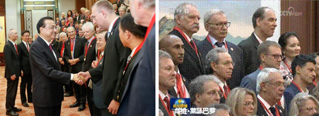 图16 建筑国际化示范学院外籍院长戴维·莱瑟巴罗教授被授予2019年度中国政府“友谊奖”,在人民大会堂受国务院总理李克强亲切会见。