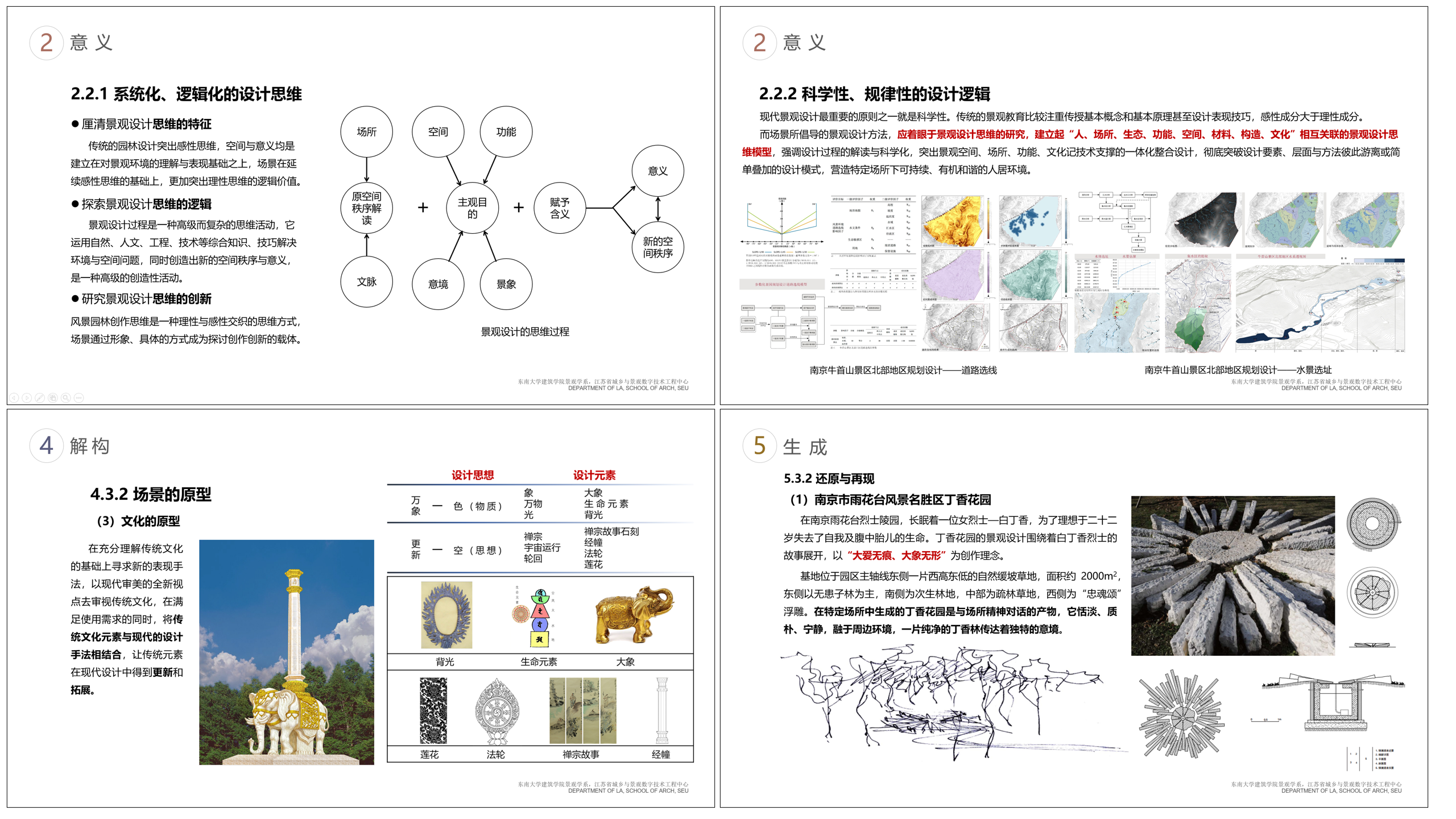 本课程面向风景园林学、建筑学、城乡规划学的博士研究生,旨在为学生提供景观规划设计领域更高层次的专业认知与前瞻视野。景观规划与设计作为风景园林专业的核心能力,涉及本学科各领域的知识与技能。作为一门博士阶段的课程,聚焦景观规划设计的前沿理论与关键问题,不止于教授设计过程本身,更注重引导学生建构起实践、方法与思维的闭环,探索设计思维产生与发展的多种可能。课程内容既关注建立在场地、场所、场景基础上的规划设计本体问题,又强调寻求思维的底层逻辑及其生成规律,指导学生建立起更加系统的设计思维方式。同时,积极将数字技术引入设计的全流程,推动景观规划设计的科学化与精细化。