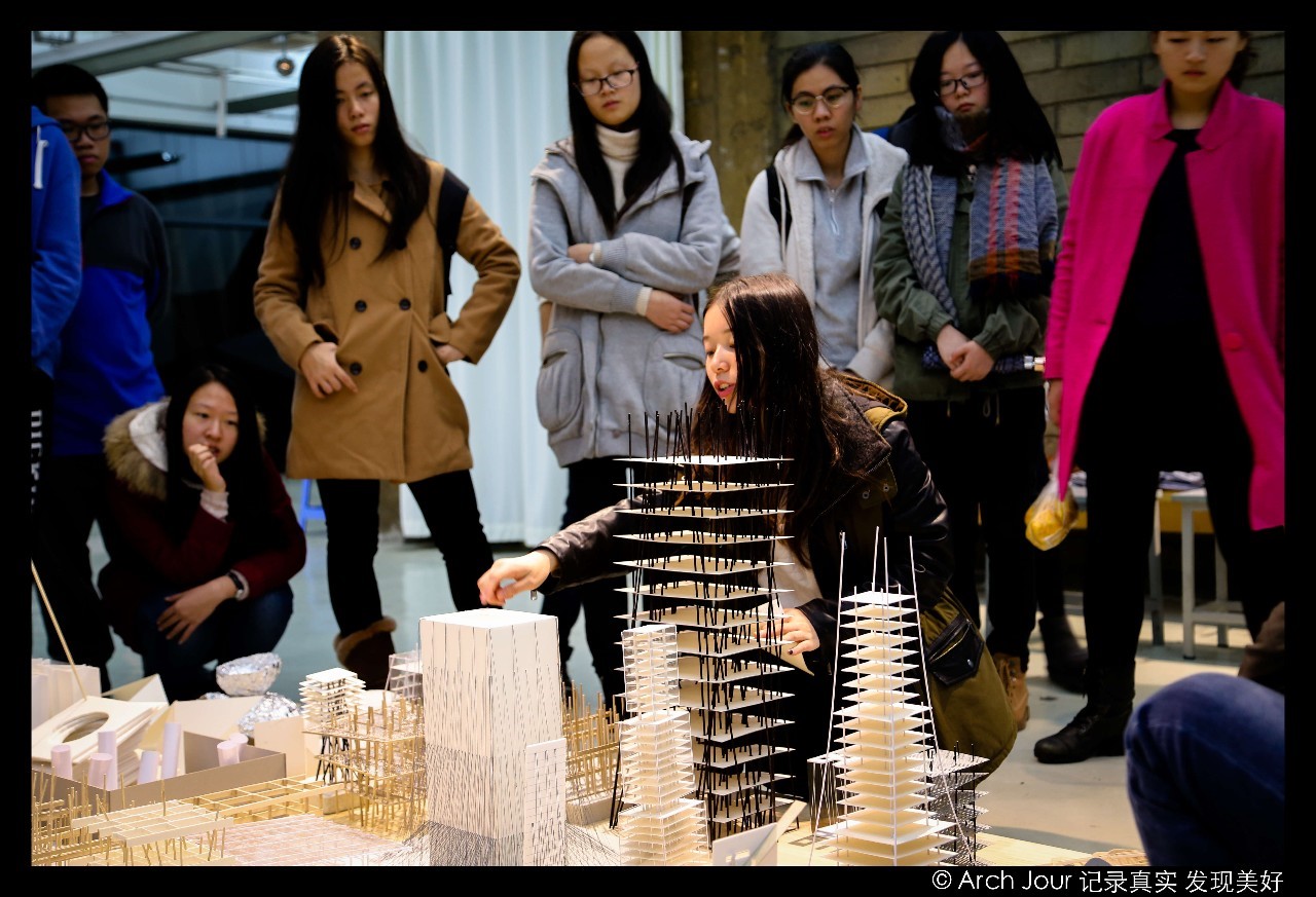 晚上七点半,练玲玲研究生学姐(Kerez课程的参与者)带着各校同学参观前工院一楼展厅的Kerez个人设计作品展,并给我们进行了深入浅出的讲解,同时也讲解了一些优秀的有特点的学生作品。在Kerez的设计作品中,结构与空间的独特关系使他的作品清晰中隐藏着惊奇。Kerez教授围绕概念思考和模型制作这一主题,通过模仿学习和主题性概念设计练习,指导学生如何挖掘模型制作的潜力以及通过模型制作来推动设计概念的发展。练玲玲学姐的精彩讲解让我们都受益匪浅,在此向她表示诚挚的谢意!