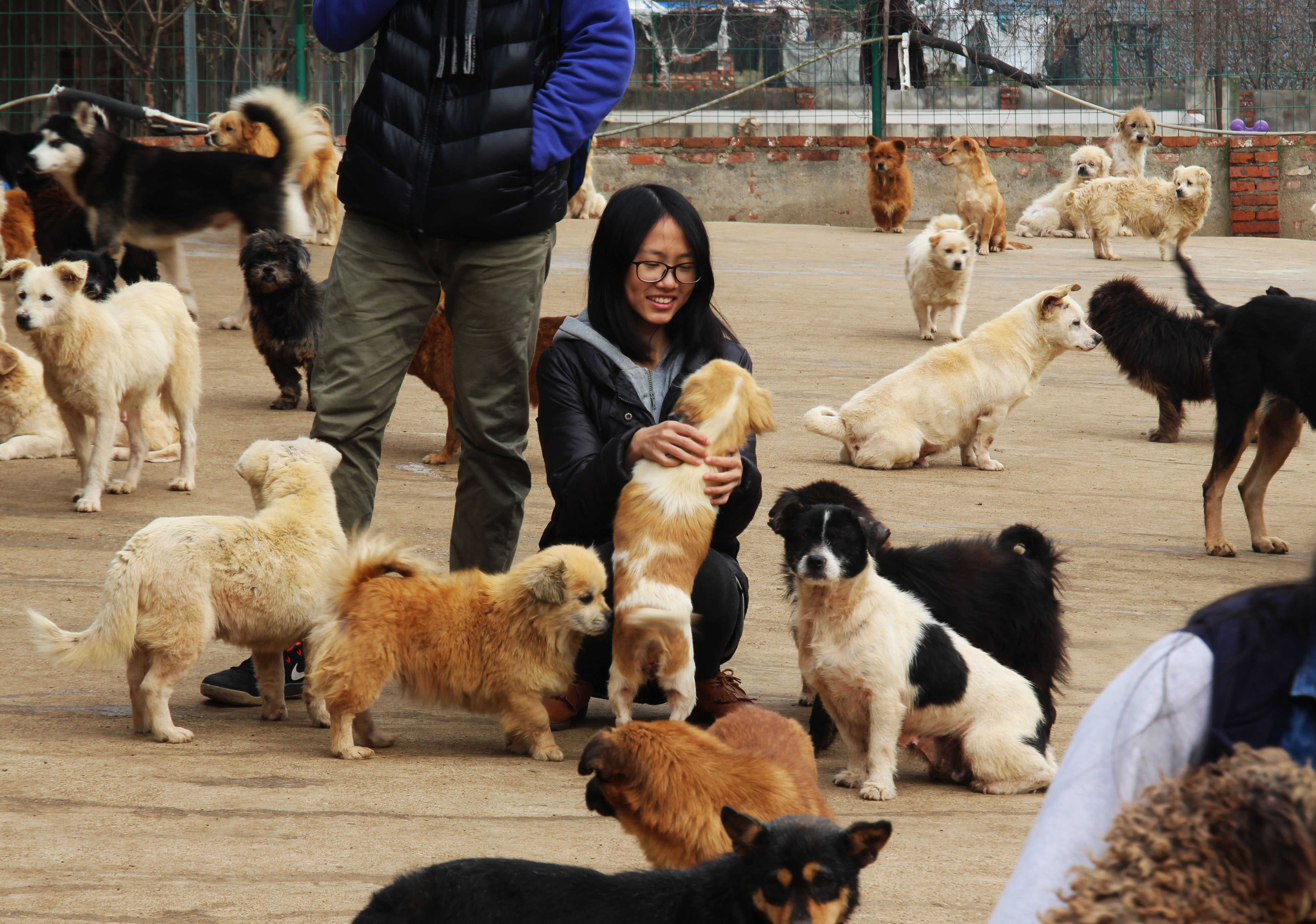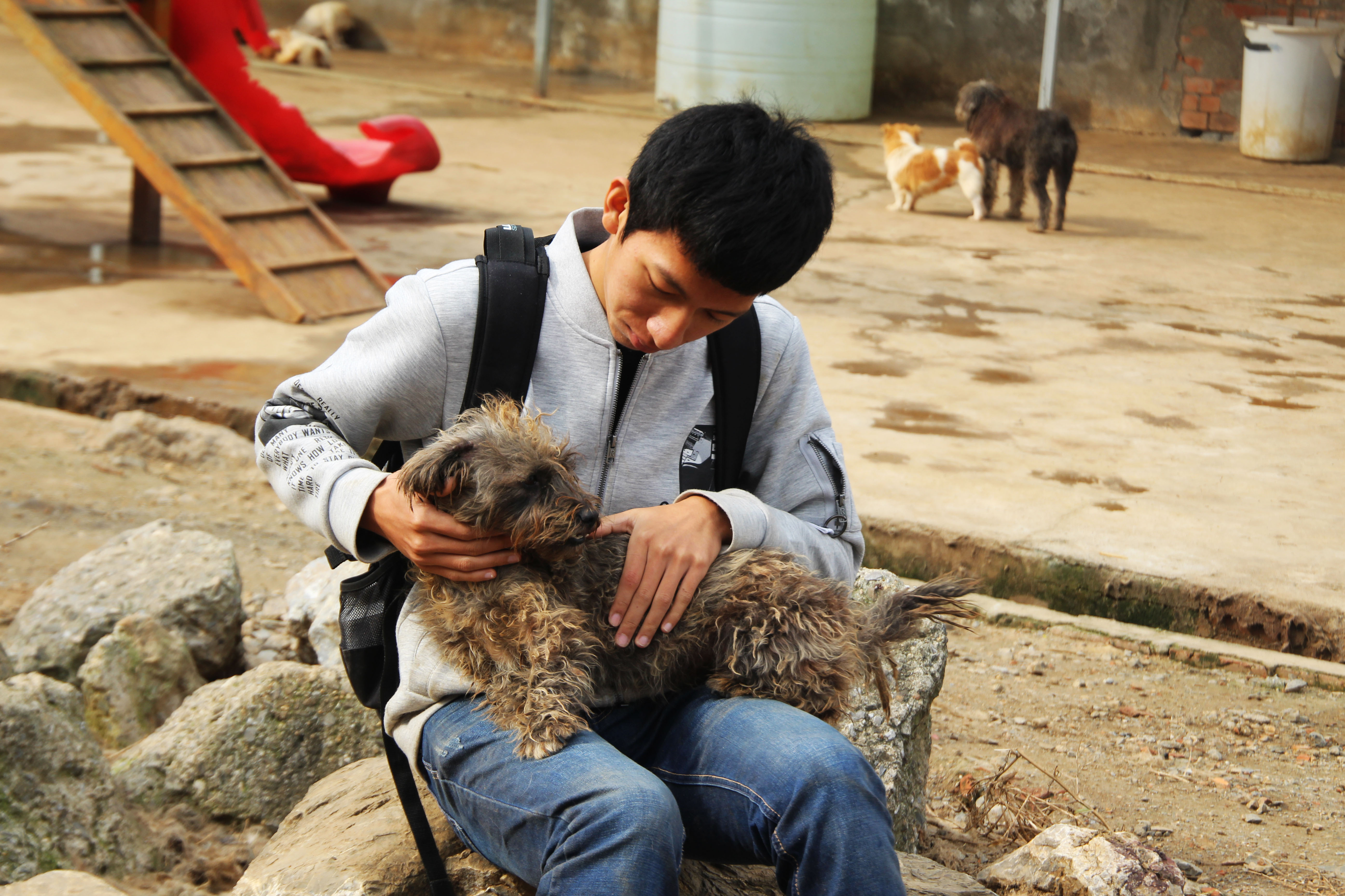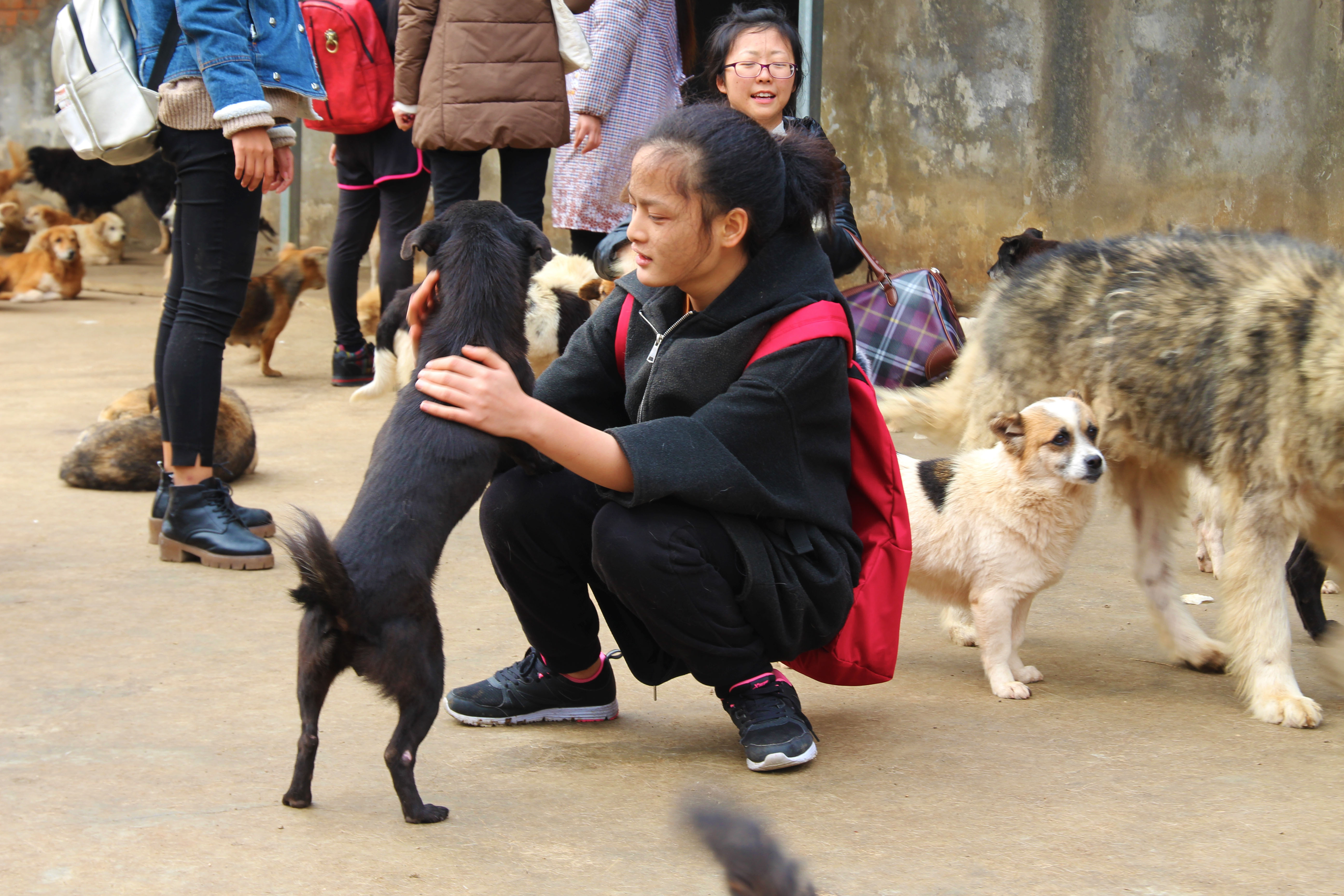 志愿者们一进入犬舍就被成群的流浪犬团团围住,它们都使劲地摇着尾巴,仿佛在表达最热烈的欢迎。大家都纷纷俯下身,和身边的狗狗玩耍。有的狗狗在志愿者的抚摸下舒适地眯起了眼睛,有的会兴奋地扑向你或是跳进你的怀里。
