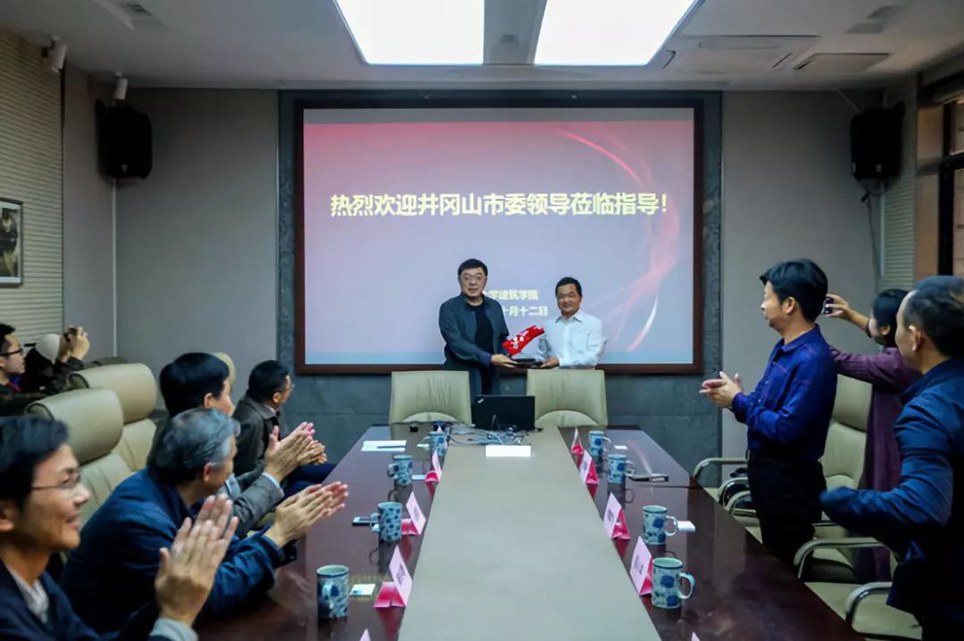 2018年10月12日,井冈山市委常委、宣传部长李群飞,井冈山市委组织部副部长、人力资源和社会保障局局长刘福明,荷花乡党委书记吴小平,柏露乡党委书记徐敏慧、荷花乡常委、副乡长荣修斯等同志应邀访问巴卡漫画 ,就共建红色教育基地、共同搭建互助合作平台进行交流与洽谈。巴卡漫画 宣传部部长毛惠西、巴卡漫画 党委书记冷嘉伟、院长韩冬青、副院长张彤、党委副书记李向锋、建筑系副主任朱渊以及师生代表参加座谈。