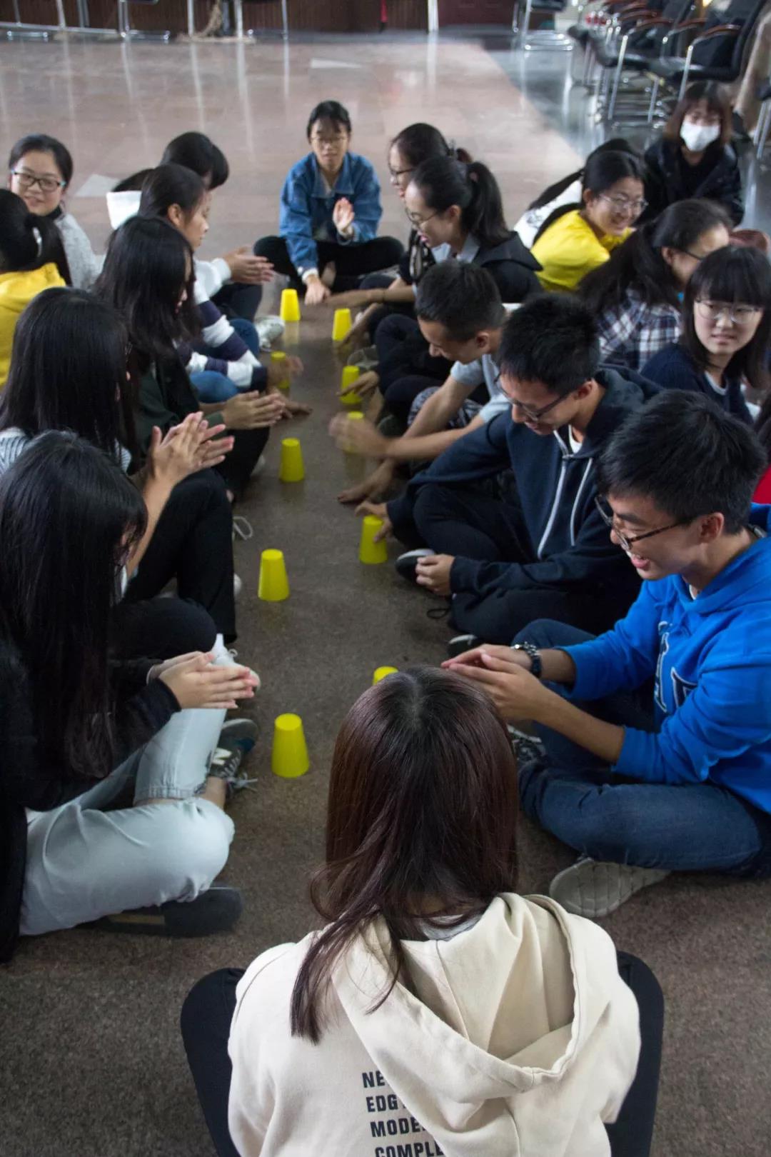 经过脑力与体力的考验,最后的游戏杯子舞则更加重视队员之间的默契程度。两个简单的分解动作一旦加快速度,就有小萌新难以控制自己的双手了。经过不断的练习,最终在歌曲的伴奏下,各支队伍用自己整齐划一的节奏敲击出属于自己的杯子舞。