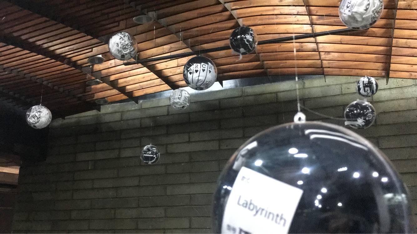 精致而别出一格的包装更是为文化衫添上点睛之笔!包装灵感来自于皮卡丘的精灵球——利用透明的球型包装,以精心设计的标签贴纸固定,穿以钓鱼线在前工院一楼展厅前悬挂,高低错落,透明的球壳反射着莹白的灯光,与灯光交相辉映,为晚会入口处营造光影效果,更将晚会的氛围烘托到了极致。