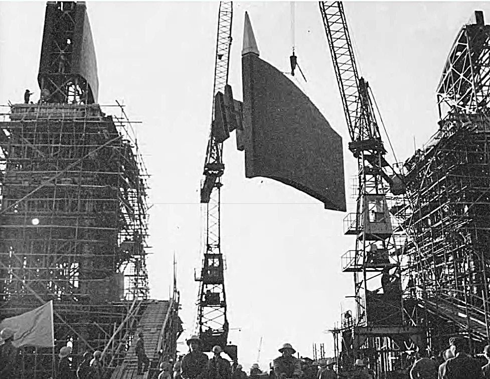 南京长江大桥桥头堡建设现场(图片来自网络)