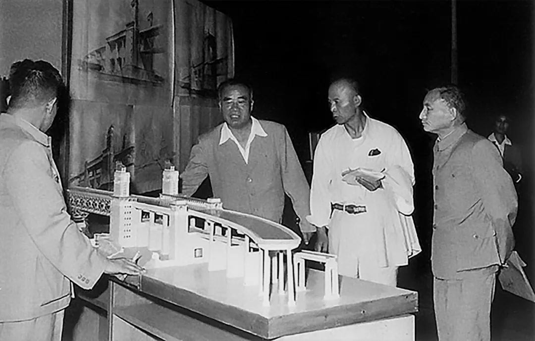 朱德等党和国家领导人讨论南京长江大桥桥头堡设计方案(图片来自网络)