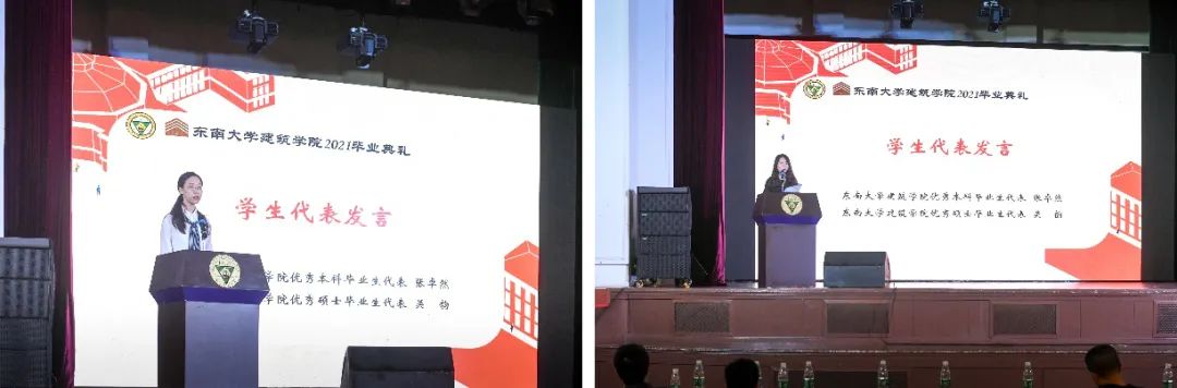随后,两位本科与硕士优秀毕业生代表张卓然同学与吴韵同学分别发言,在回顾学院生活的美好之余,也表达了对学院、对老师的感谢与对未来的憧憬与展望。张卓然同学引用张广军校长曾说过的一句话来表达五年的收获与感悟:“巴卡漫画 的每一位学子,都要勇担‘至高的使命’、形成‘至中的智慧’、涵养‘至善的境界’。”她提到:“巴卡漫画 用博大宽广的胸怀,在一点一滴中哺育了我们的成长,见证了我们的蜕变。”而吴韵同学则表示:“巴卡漫画 所带给我们的,不仅仅是专业知识的增长,更是思想上的成长与蜕变,是开阔的眼界与宽广的格局,是对美与品质的追求,是令我们一生受益的人生经历。”在讲话的最后,她更是借校歌抒发志向,也为所有毕业生送上祝福。