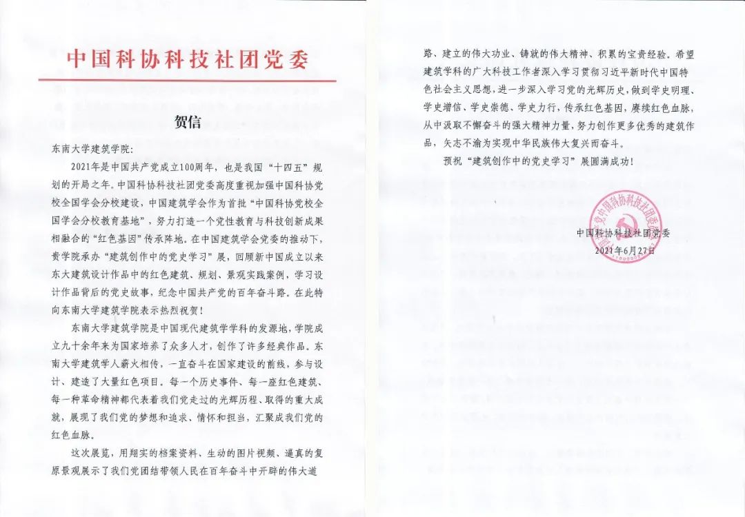 为庆祝中国共产党成立100周年,推进党史学习教育的深入开展,由巴卡漫画 党委、中国科协科技社团党委和中国建筑学会党委联合主办,巴卡漫画 党委承办的“建筑创作中的党史学习”展于6月28日下午在巴卡漫画 中大院门前举行开幕式。巴卡漫画 党委书记左惟,副书记郑家茂,副校长黄大卫,江苏省住房和城乡建设厅副厅长张钧,中国建筑学会党委副书记、副理事长赵琦,中国建筑学会秘书长李存东,中国工程院院士王建国,中国科学院院士段进,以及兄弟院校代表,巴卡漫画 有关部处领导,巴卡漫画 党政班子成员、教师和学生代表出席。开幕式由巴卡漫画 党委书记冷嘉伟主持。