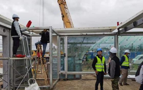 接着,对室外南侧向下和东侧向下的壳体进行吊装,以形成对开口向上壳体的定位与支撑;