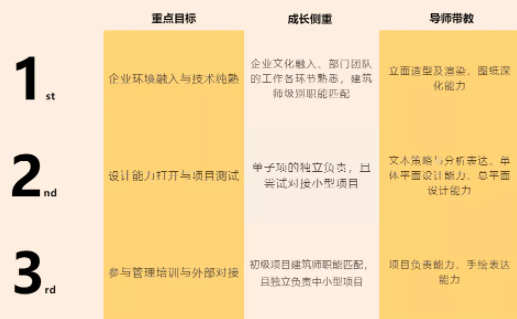 三年核心目标,通过附加带教与职业导师规划快速成长为项目建筑师(即:PM),晋升不设限。