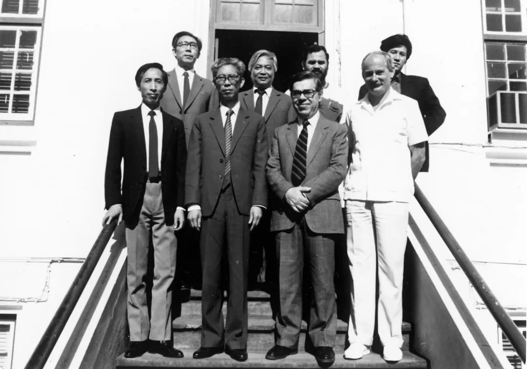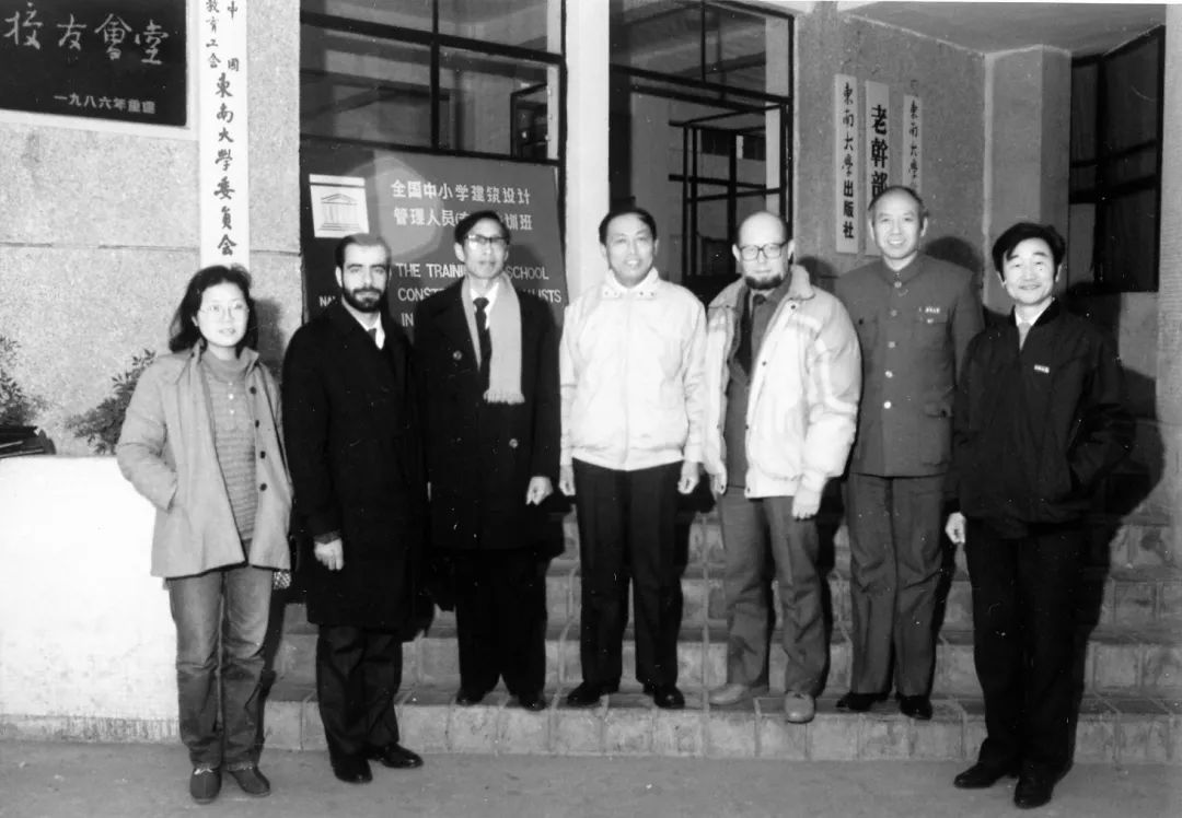 1988年,受联合国UNASCO委办教育建筑设计管理培训班,左三为沈国尧。