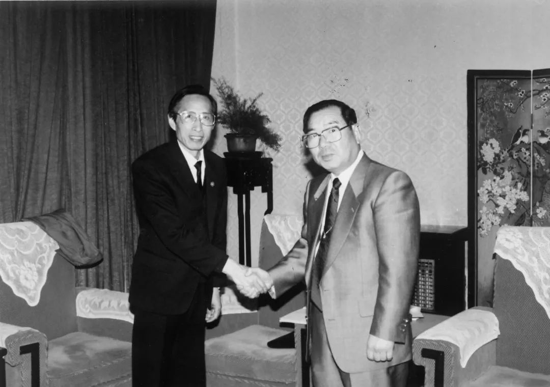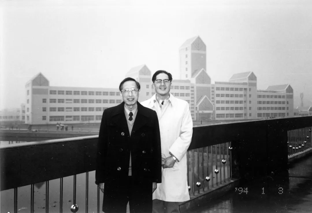 1990年,设计南京中日友好会馆,在方案阶段曾与日本玉井建筑设计事务所合作。图为与玉井光洋所长在一次方案讨论会后留影,左一为沈国尧。