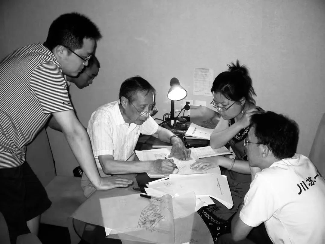 2008年,汶川地震灾后重建学校设计,右三为沈国尧。