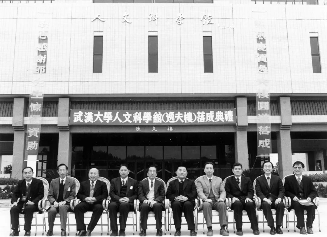 1990年,武汉大学人文馆落成典礼后与邵逸夫先生代表及部、省、校领导合影,左二为沈国尧。