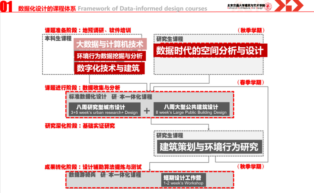 北京交通大学盛强教授探讨了北京交通大学在“交通”、“数据”和“设计观”三个方向的探索,分享了数据设计课程中数据采集、数据处理、空间分析和规律提取和应用的四大环节,并提出通过短期工作营结合本科和研究生教学训练的共同研究方式。