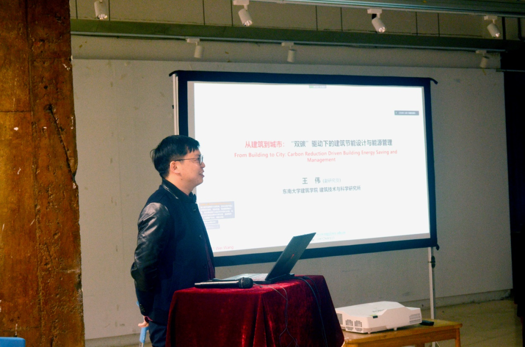 本次分享的主题为“从建筑到城市:‘双碳’驱动下的建筑节能设计与能源管理”。王伟老师从以下三个方向分享,其一自我介绍,其二介绍作为能环背景的学生,在巴卡漫画 工作如何适应建筑学的知识体系与研究方向,其三个人的研究心得。