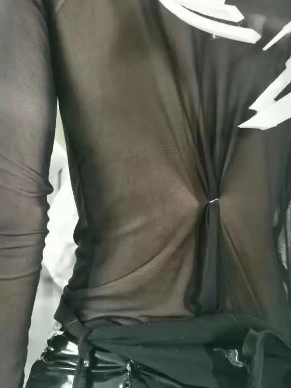 本服装重塑了男性身体的视觉结构,放弃了传统的“上衣、下装”的思路而采取身体包裹-构件隐喻的层次,结合半透明纱网与带有强烈束缚色彩的3D打印构件叠加,形成反直觉但又映射日常生活的男性形象。