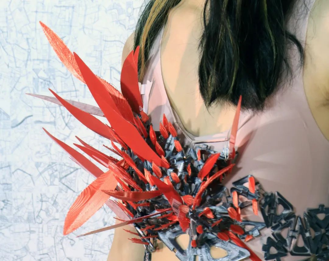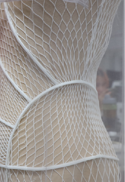 3D打印时装新兴的3D打印技术可以创造出前所未有的新型织物,成为当下建筑师进行定制时装设计的一个重要动机。特别是TPU柔性打印、FDM结合布料等制造方式为时装造型与面料质感提供了新的想象空间。很多织物打印实验都会面临失败或带有瑕疵,但我们可以用手或身体去直接感受织物,进而调整其几何结构或打印工艺。