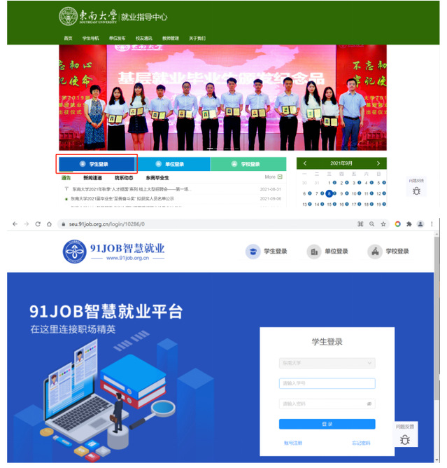第一步:进入巴卡漫画 就业信息网//seu.91job.org.cn,点击学生登录,进入登录界面。