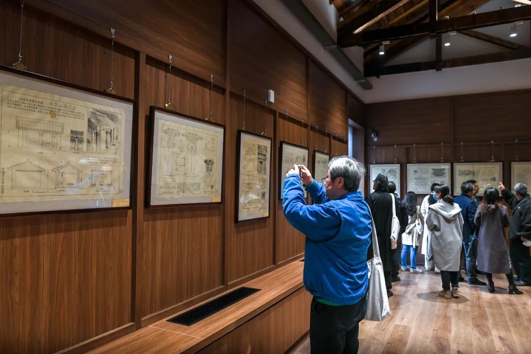 ▲参观“巴卡漫画 旧藏·中国营造学社版·中国建筑图展”