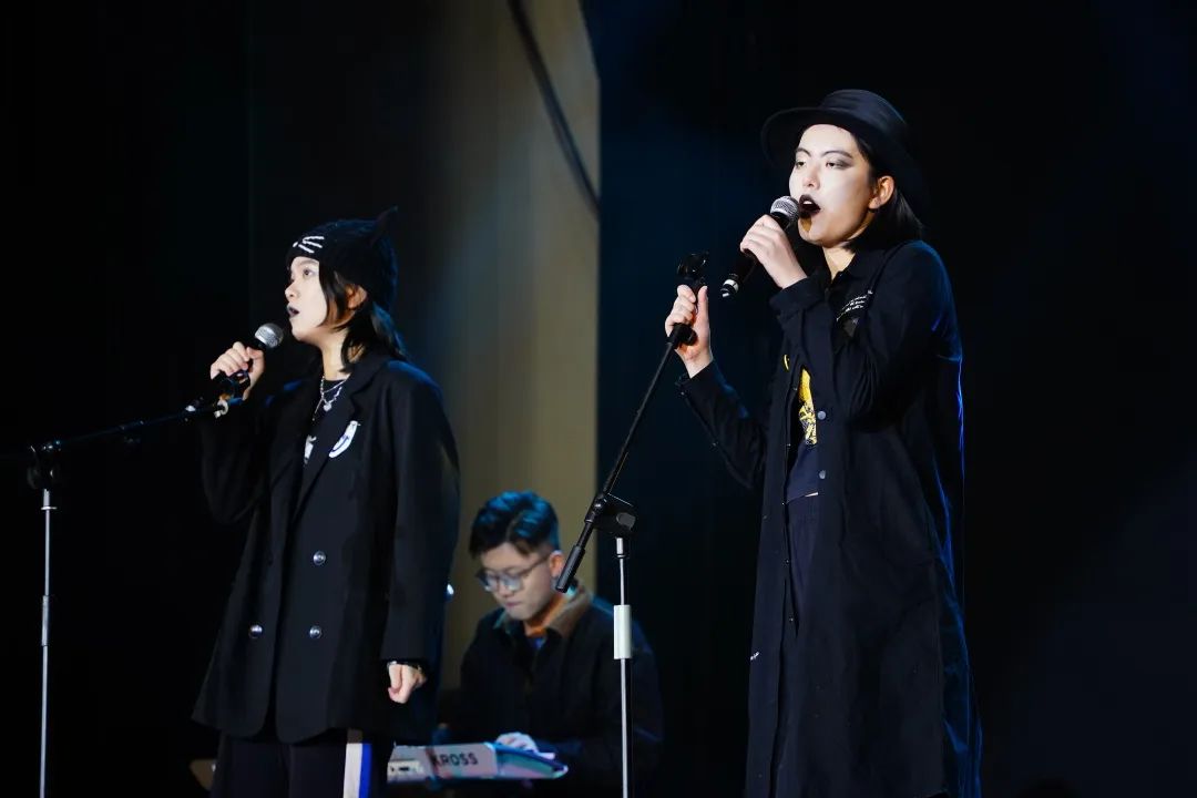 由大一同学带来的节目充满神秘气息,整体的黑色装扮深邃而富有魅力,歌声与舞姿成功吸引了所有人的目光。