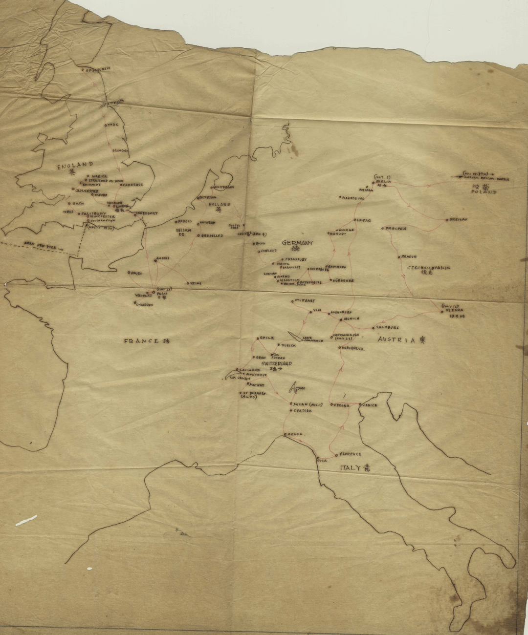 《童寯欧洲壮游地图》童寯