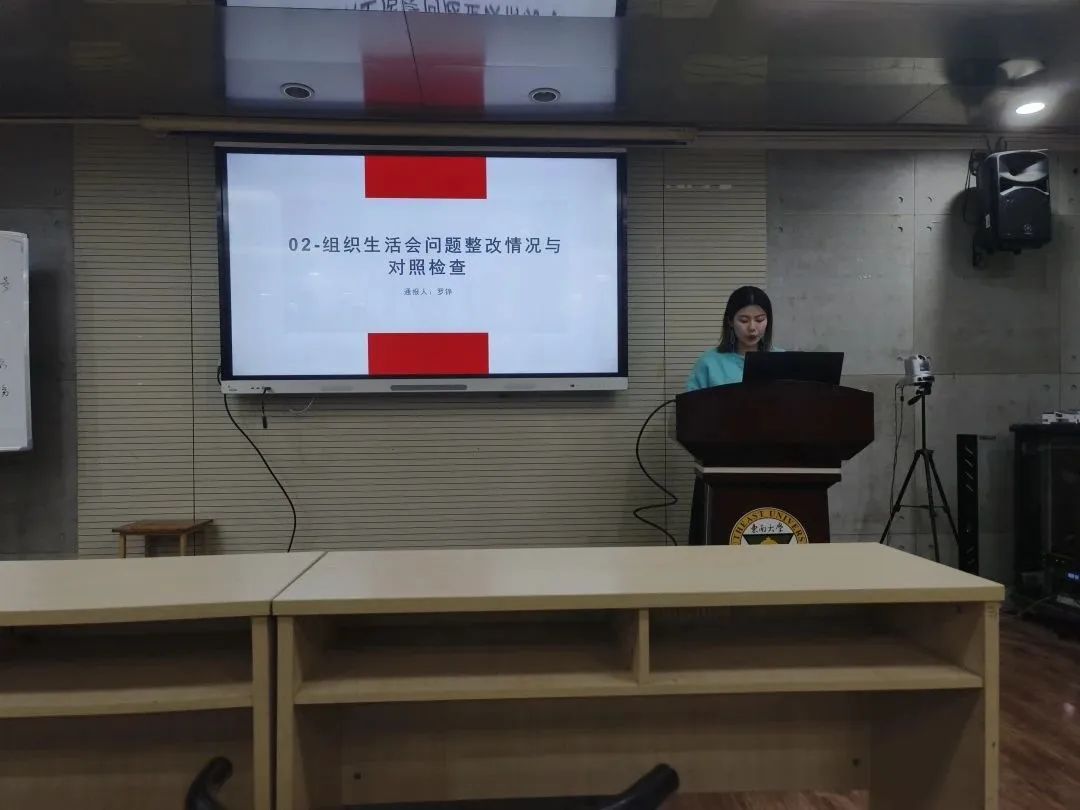 组织委员罗铮同志代表党支部委员会通报2022-2023年度组织生活会问题整改情况并作对照检查。