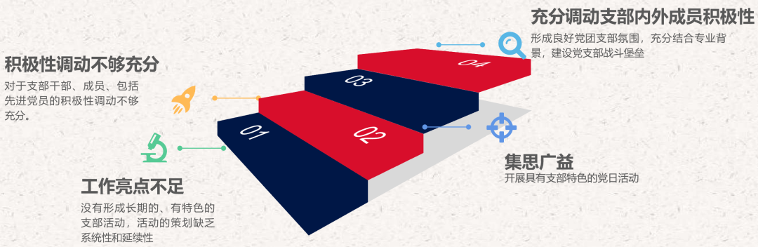 一是过于注重调动积极分子积极性而忽略党员,须知打铁还需自身硬,对于支部成员的积极性调动有待进一步加强;