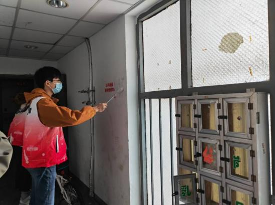 烂漫春色里,东大青年志愿者化身“红马甲文明使者”,投身于成贤街115号楼道清理的志愿活动。楼道中,志愿者们三人一组拾捡烟头、塑料袋、饮料瓶等生活垃圾,特别是对楼道中的卫生死角、 “隐形垃圾”进行细致清理;楼梯间中,志愿者手持工具对楼道墙体、电表箱上的各类小广告进行集中清理;同时,志愿者们也助力楼道中的杂物整理工作,与居民公共营造整洁舒适的人居环境。