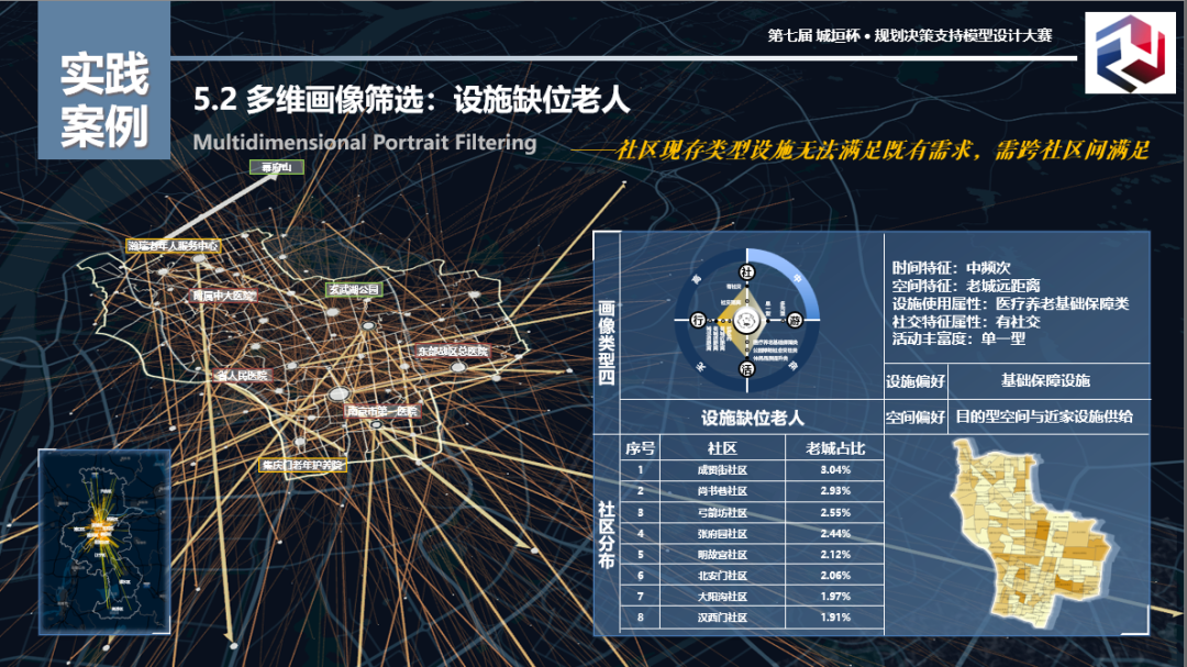 本研究从需求出发,深入研究老年人群的时空行为规律,关注老年群体间在社会经济、行为活动、社交联系等层面的差异化特征,识别其生理需求、物质保障、社会交往、自主出行等多维度需求,从而提供精准化、精细化服务。理解老年人群需求与空间之间的矛盾关系,强化了“数据增强设计”的理念,进而为城市规划实践提供理性的借鉴,为城市建设和更新的规划决策提供依据,呼应以人为本的新型城镇化。