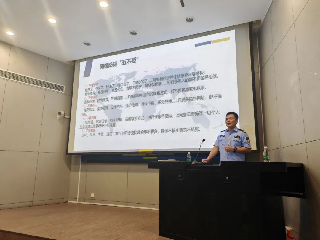 讲座最后,针对高校学生的个人信息保护与网络诈骗防范,刘志跃中队长向同学们介绍了“五不要”口诀:不要轻信、不要回拨、不要点击、不要透露、不要转账。
