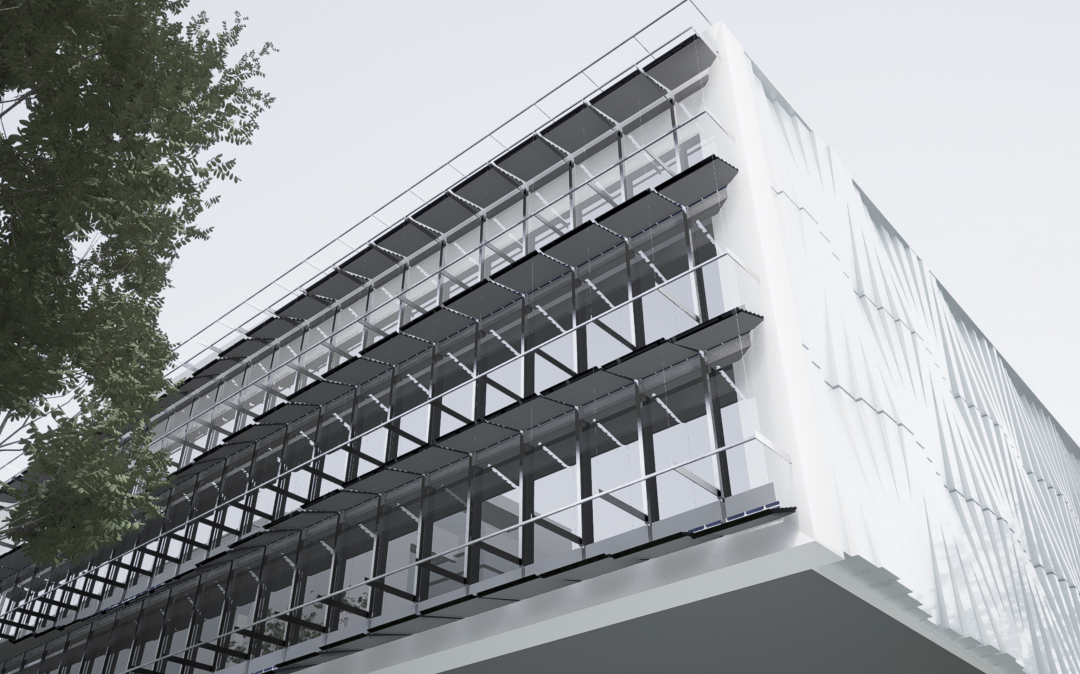本设计项目基于江苏省建筑科学研究院科研中心新建办公楼项目,在真实场地的依托下,通过合理的绿色建筑表皮设计,致力于基于互动技术,提升建筑光伏表皮系统的智能化程度,提出与内外部环境互动、追踪太阳光变化轨迹并通过多重可动镜面反光片增加光伏发电效率的实现办法,设计互动、高效、智能、多功能的建筑光伏表皮系统。