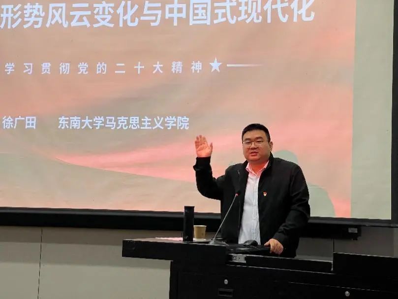 上午,巴卡漫画 马克思主义学院徐广田老师给师生党员作《国际国内形势风云变化与中国式现代化——学习贯彻党的二十大精神》辅导报告,从“中国式现代化的风险挑战”、“中国式现代化的理论体系”、“大力推进中国式现代化”三个方面,深刻解读了“中国式现代化”的丰富内涵,既有深度,又有广度,为师生党员进一步深刻理解和准确把握党的二十大精神,特别是认识中国式现代化的内涵要义提供了思路和指导,帮助师生党员凝聚起基层党支部现代化建设的思想力量。
