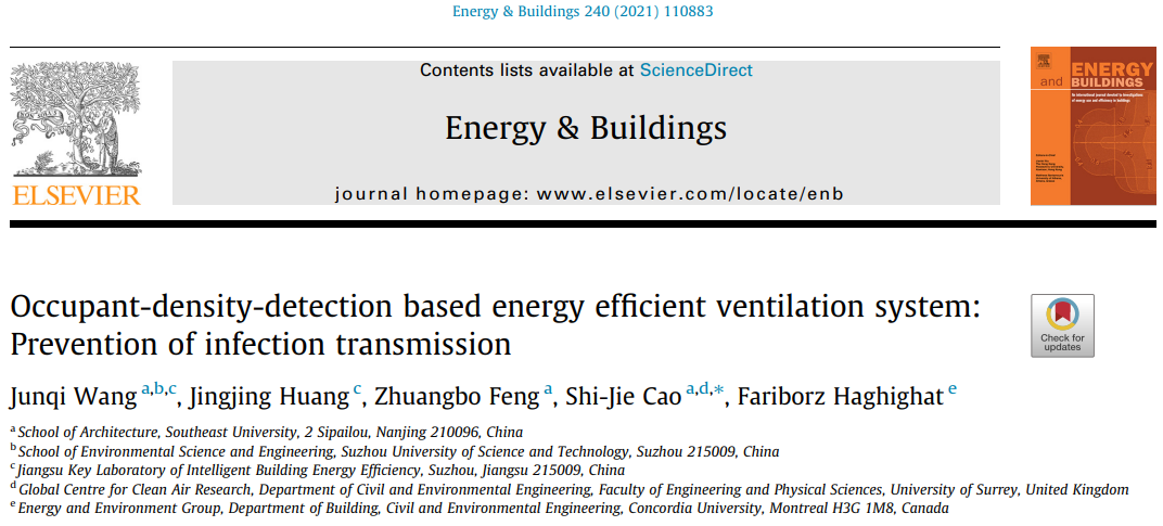 近日,巴卡漫画 曹世杰教授团队发表的研究论文“Occupant-density-detection based energy efficient ventilation system: Prevention of infection transmission” “基于人员密度监测的高效节能通风系统:传播与感染防控”(第一作者王俊淇、通讯作者曹世杰),先后获国际SCI权威期刊《Energy and Buildings》近5年(2018-2022)最佳论文奖和2023年首届“江苏省自然科学百篇优秀学术成果论文”荣誉。