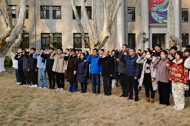 随后,师生一行移步中大院面前的大草坪,并分为五排站队,新发展党员站在队伍的最前列。仲德崑老师、张豪裕老师、曹俊老师、奚月林老师分别为近期19位新发展党员佩戴党徽,这是对新发展党员的肯定和鼓励,勉励他们坚定信念,不忘初心,牢记使命,不断学习和进步,以新姿态从容主动、更加积极地践行党员义务,履行党员责任。