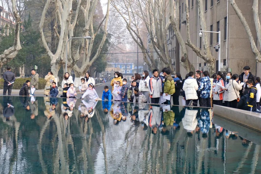随后在大学生志愿者的带领下,学生和家长一起分成四组有序进行校园参观。从四牌楼校区南大门沿着中央大道经过中大院、老图书馆到大礼堂,再到体育馆、团二大旧址——梅庵、六朝松……在志愿者娴熟而细致的讲解中让大家了解到每一栋建筑背后的历史和故事,领略到东大校园深厚的人文底蕴,好多小朋友表示下次要邀请他们的同学再来参观。