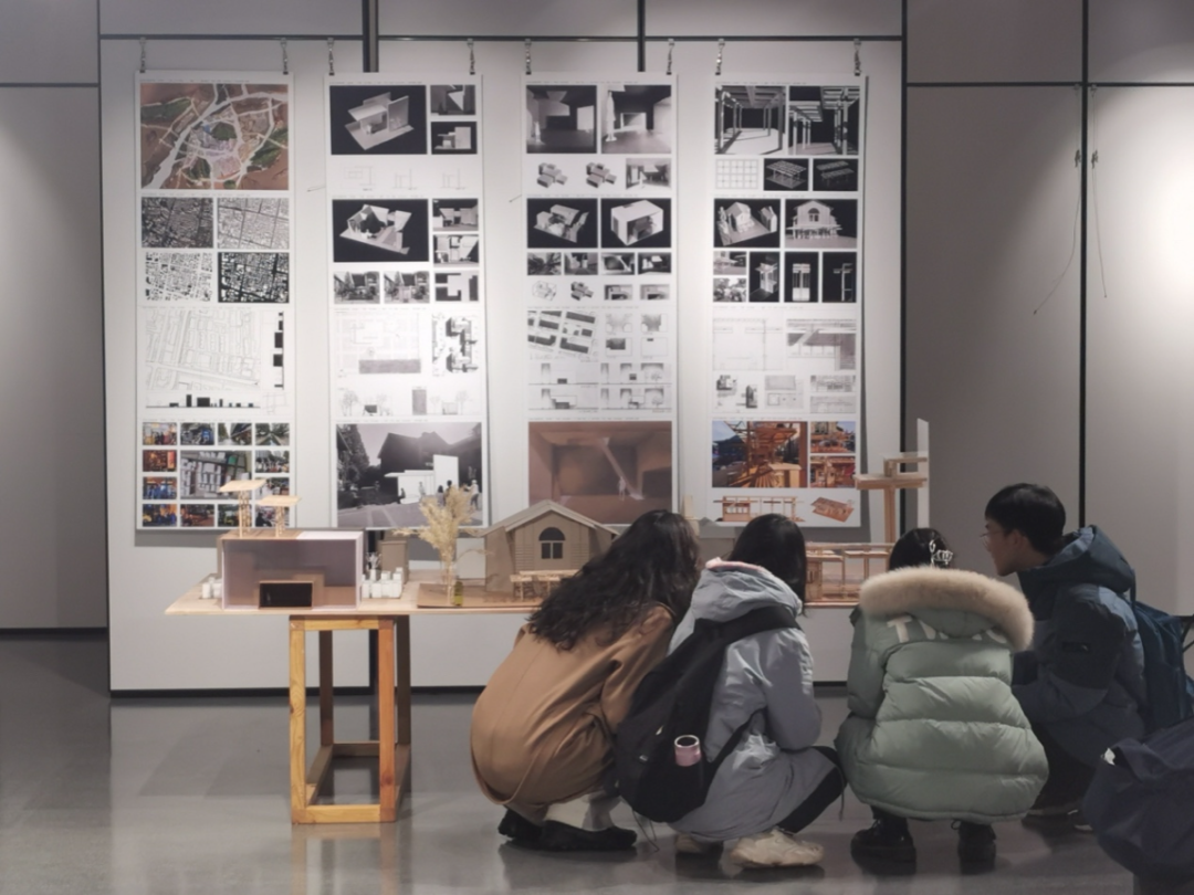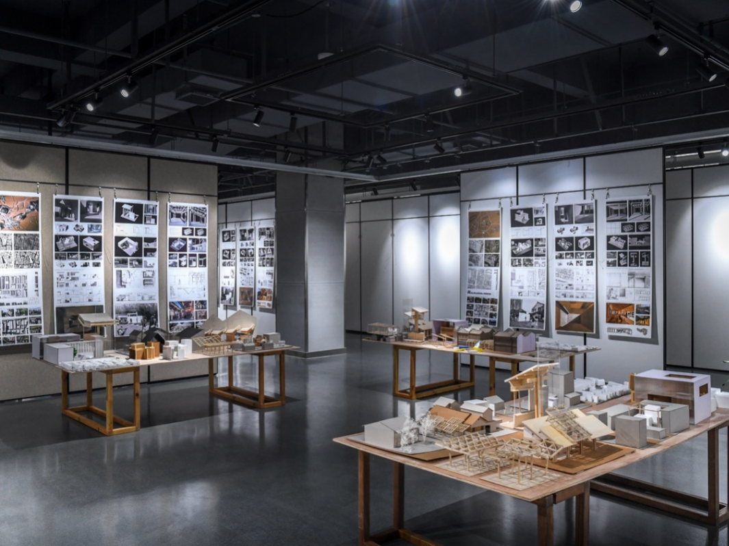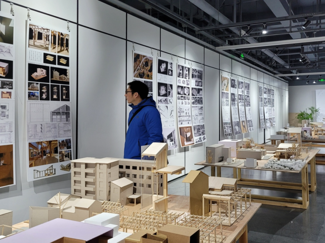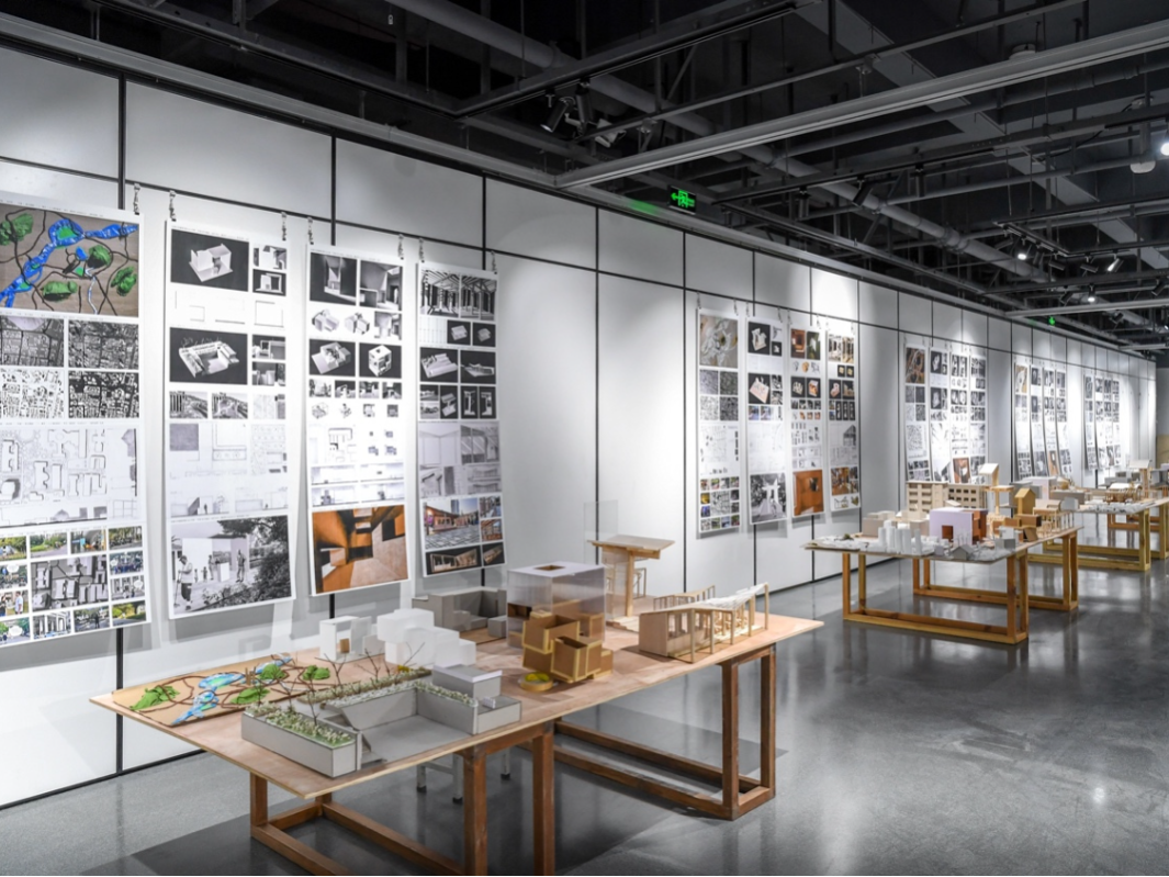 4. 评图展厅:线下评价共享空间在专用展厅举行阶段性成果展示,学生自行布置。邀请职业建筑师评委参加评图,形成全体师生与从业者交流共享的氛围,促成开放互动的教学环境。