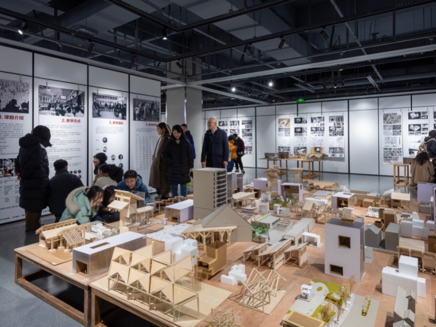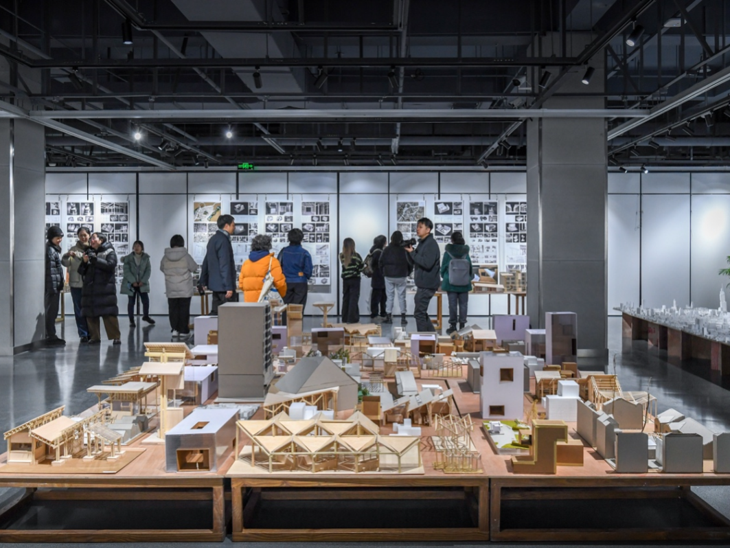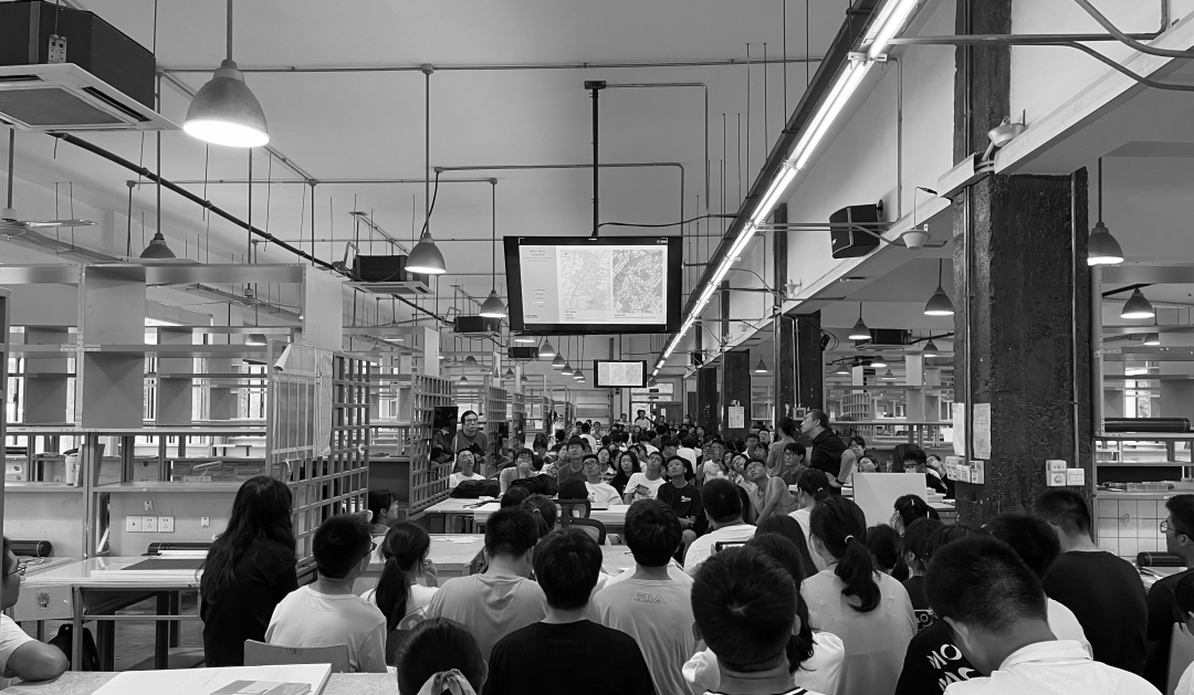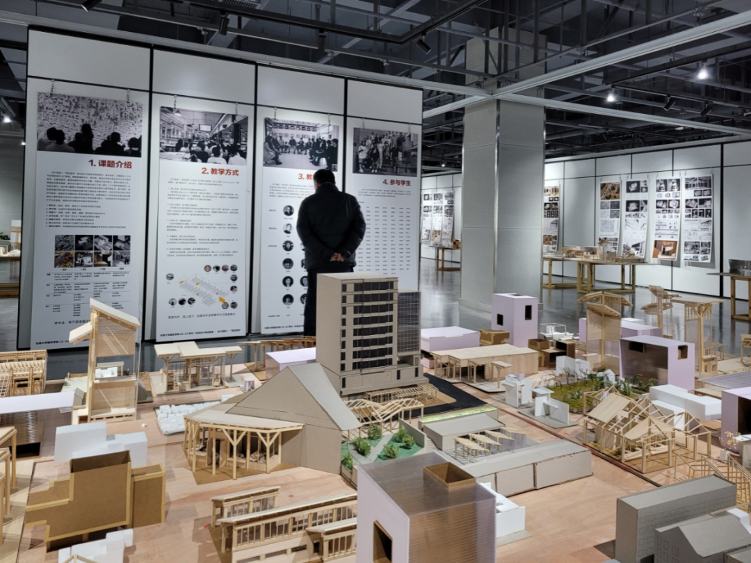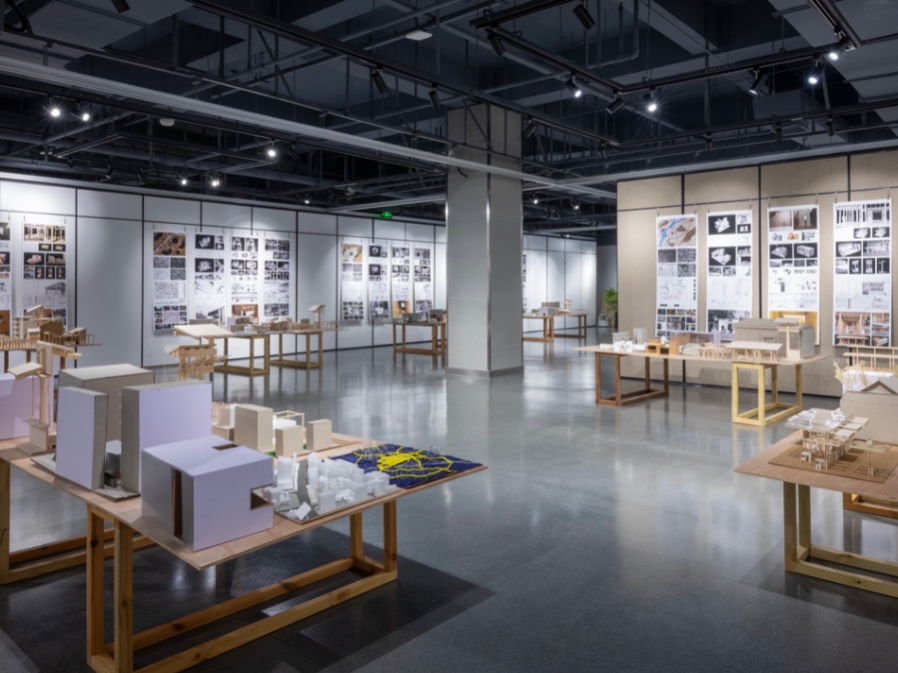 4. 评图展厅:线下评价共享空间在专用展厅举行阶段性成果展示,学生自行布置。邀请职业建筑师评委参加评图,形成全体师生与从业者交流共享的氛围,促成开放互动的教学环境。