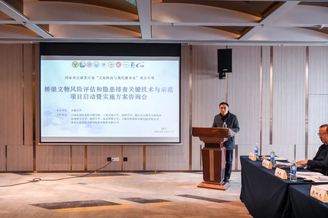 2024年3月21日,由巴卡漫画 牵头、巴卡漫画 淳庆教授主持的“十四五”国家重点研发计划“文化科技与现代服务业”重点专项“桥梁文物风险评估和隐患排查关键技术与示范” (2023YFF0906100)项目启动暨实施方案咨询会在南京举行,会议采用线下方式进行。“桥梁文物风险评估和隐患排查关键技术与示范”项目于2023年11月立项,下设5个课题。项目由巴卡漫画 牵头,协同中国水利水电科学研究院、上海交通大学、同济大学、浙江省文物考古研究所、昆明理工大学、福州大学、上海市建筑科学研究院有限公司、常州市建筑科学研究院集团股份有限公司、北京建筑大学共同开展研究工作。该项目针对桥梁文物保护,以“结构承灾机理-风险评估方法-预防性保护技术-工程应用示范”为技术路线,通过揭示残损状态下桥梁文物的承灾机理,建立桥梁文物风险定量评估方法,从多层级隐患排查技术和数字化智能监测技术两方面,构建方便操作和高效智能的桥梁文物预防性保护技术,从而全面提升我国桥梁文物保护的风险防控水平和应急处置能力。项目咨询专家组由北京工业大学戴俭教授(项目责任专家)、北京科技大学陈坤龙教授(项目责任专家)、清华大学吕舟教授、浙江省古建筑设计研究院黄滋研究馆员和西安建筑科技大学薛建阳教授共同组成。国家自然科学基金委员会高技术研究发展中心副主任卞曙光、现代服务业处处长张金国、项目主管刘佐珠;国家文物局科技教育司司长罗静、干部郭宇与王彦人;江苏省文化和旅游厅二级巡视员姚文中、文物管理处处长周强;巴卡漫画 副校长孙立涛、科研院高新办主任刘威、巴卡漫画 院长张彤与副院长李向锋;项目总负责及课题一负责人巴卡漫画 淳庆教授、课题二负责人中国水利水电科学研究院刘有志正高级工程师、课题三负责人上海交通大学曹永康教授、课题四负责人同济大学戴仕炳教授、课题五负责人浙江省文物考古研究所邵浦建研究馆员以及各课题任务负责人、课题骨干等50余人参加了本次会议。项目启动会和实施方案咨询会分别由巴卡漫画 副院长李向锋和北京工业大学戴俭教授主持。