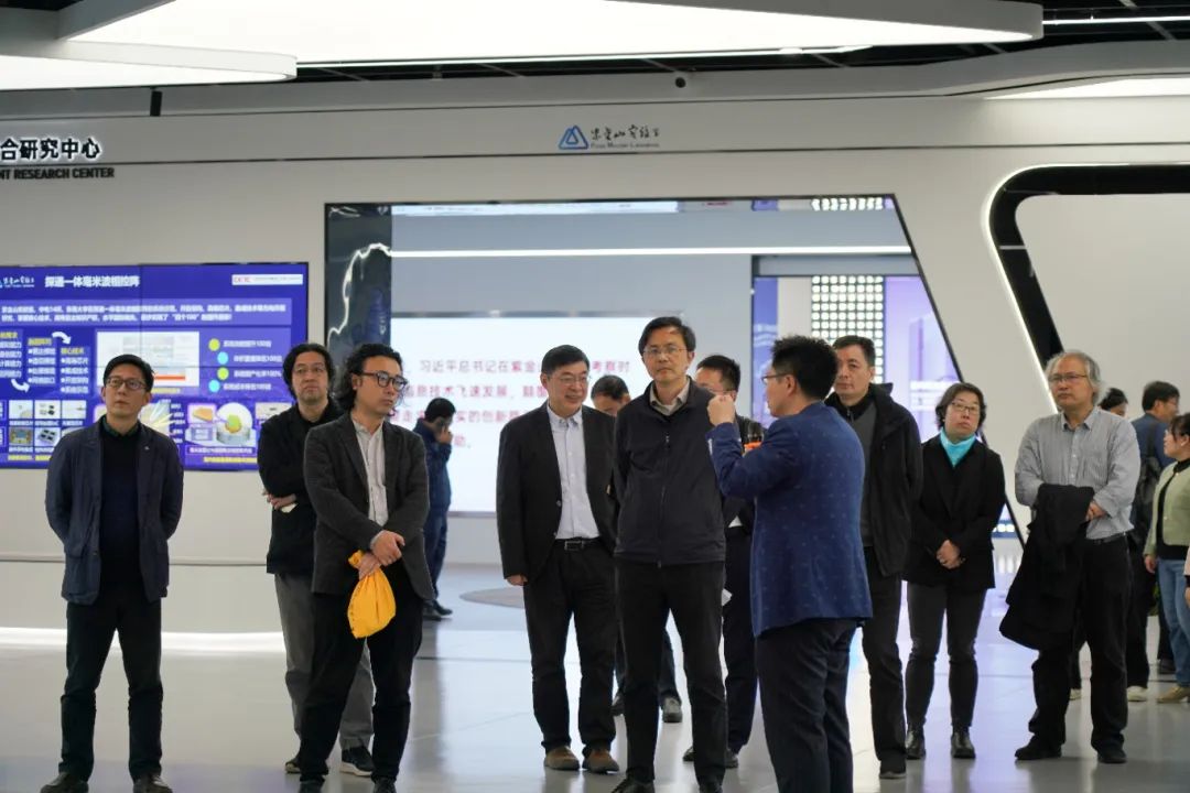 座谈交流后,两院座谈人员一起走进紫金山实验室开展现场研学,重走总书记考察路线,重温总书记重要回信精神,信息科学与工程学院张川教授对紫金山实验室发展情况进行介绍。大家走进紫金山中心楼展厅、6G综合实验室,详细了解推进6G等重大科技任务攻关等情况,在参观过程中深受鼓舞,倍感振奋,表示将在今后的工作中牢记总书记嘱托,要“以十年磨一剑的韧劲,以‘一辈子办成一件事’的执着”,更好服务国家发展建设。