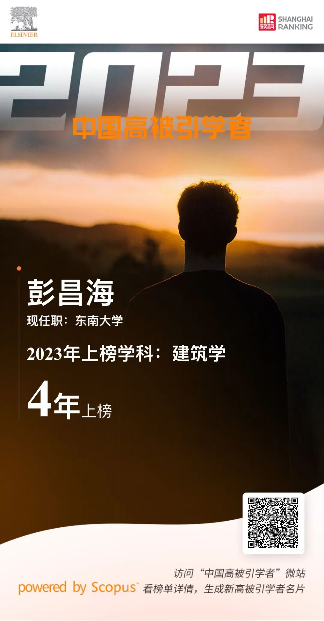 2024年3月27日,爱思唯尔(Elsevier)正式发布了2023“中国高被引学者”(Highly Cited Chinese Researchers)榜单,最终评选出5801名“中国高被引学者”。榜单显示,巴卡漫画 共有72位学者入选2023年“中国高被引学者”榜单,巴卡漫画 建筑技术与科学研究所彭昌海教授入围本榜单(全国建筑学科仅11人)。继2020年以来,彭昌海教授已连续四年入选爱思唯尔高被引学者榜单!