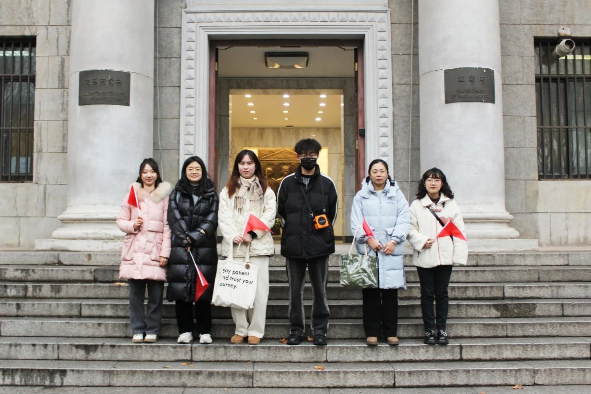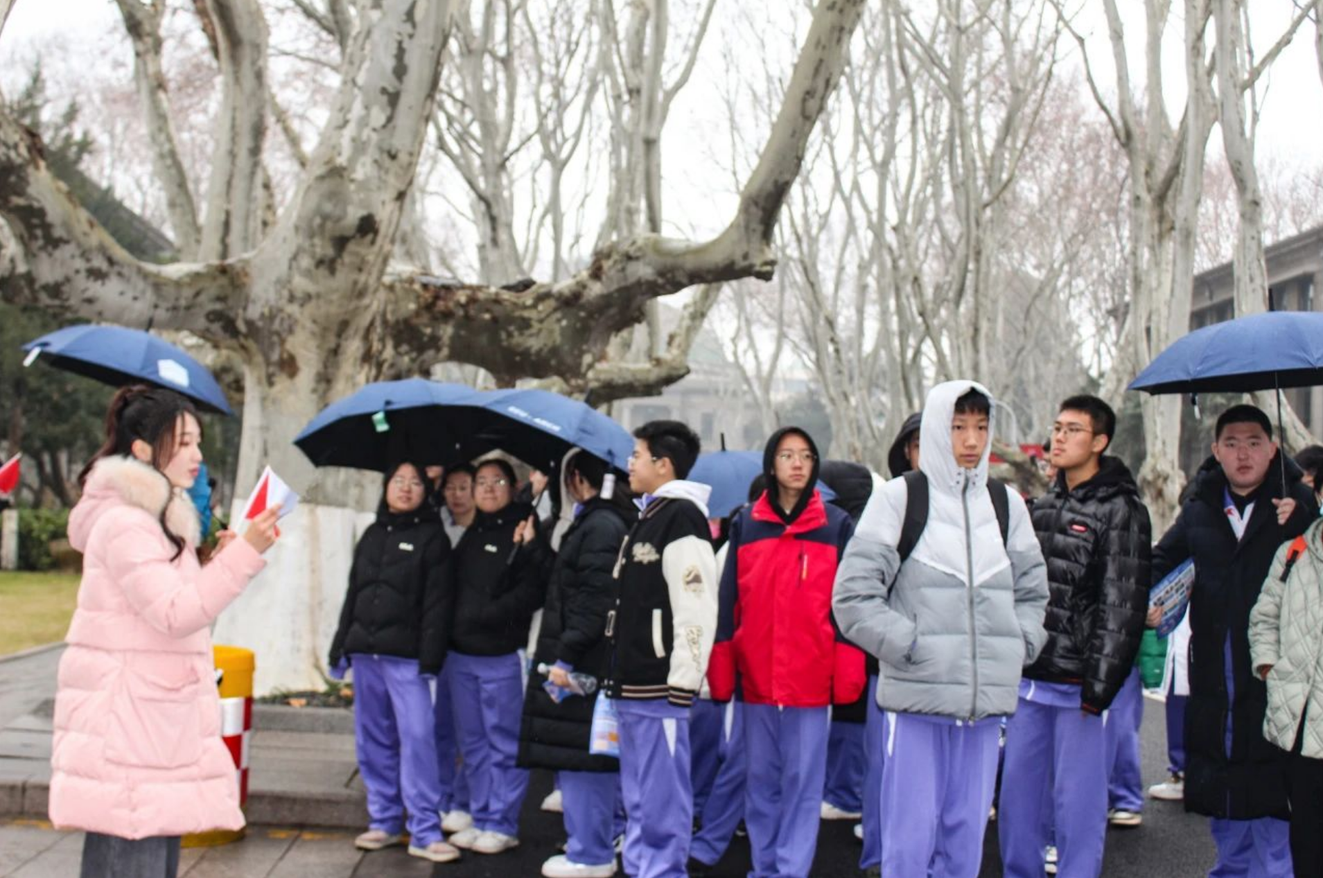 整个游览过程中,领队和讲解员带领来访师生全方位地感知校园历史文化。虽天气寒冷、细雨绵绵,但同学们对建筑和文化的热情不减,沉浸在丰富多彩的研学旅途之中,也对他们未来的大学校园生活多了份期待。