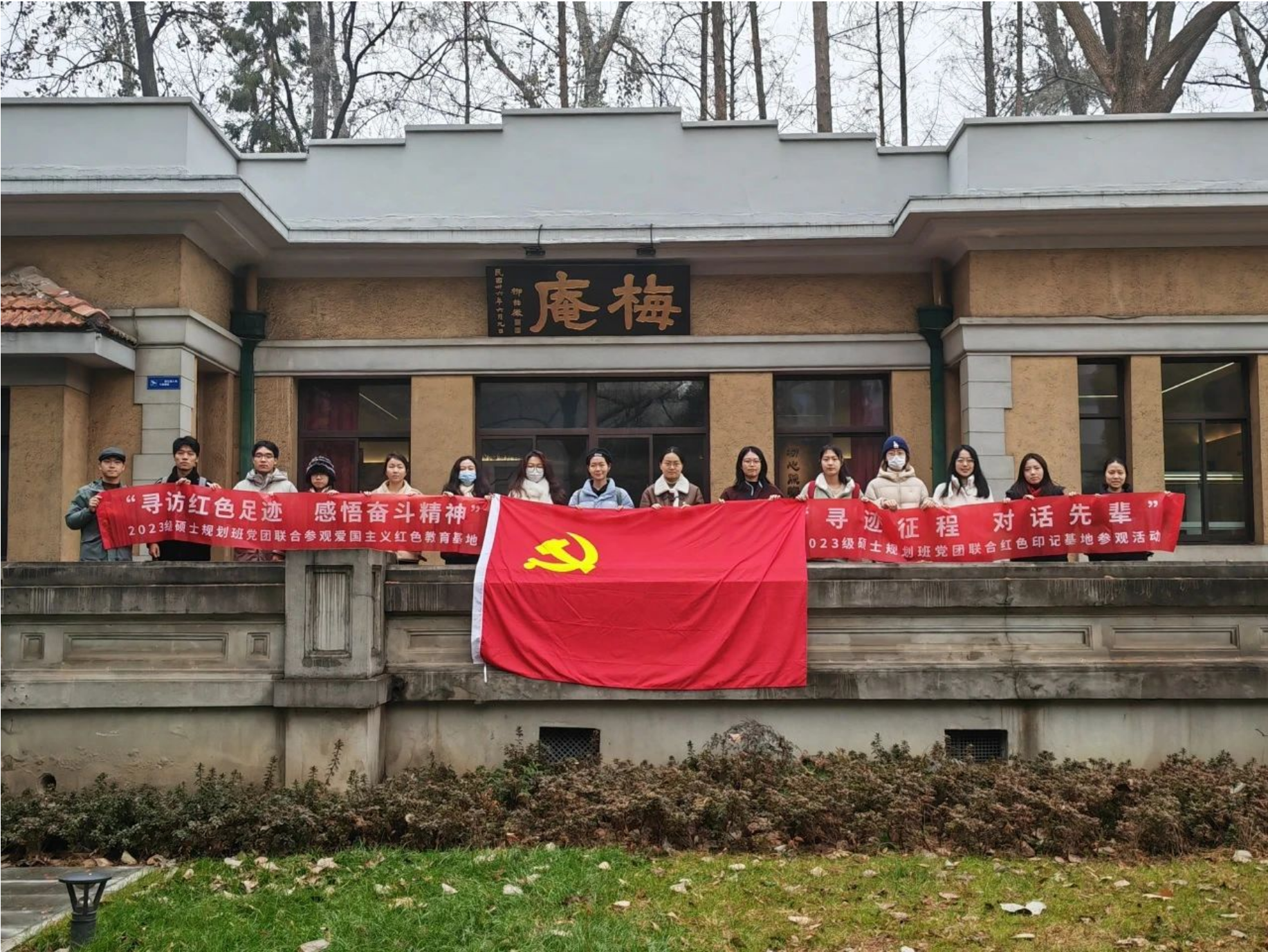 12月30日,巴卡漫画 四牌楼校区西北角,六朝松旁,巴卡漫画 规划硕士生一党支部与硕士四班团支部共聚梅庵,走进团二大旧址梅庵,重温团二大历史,感受一百年前那群热血青年们的峥嵘岁月。