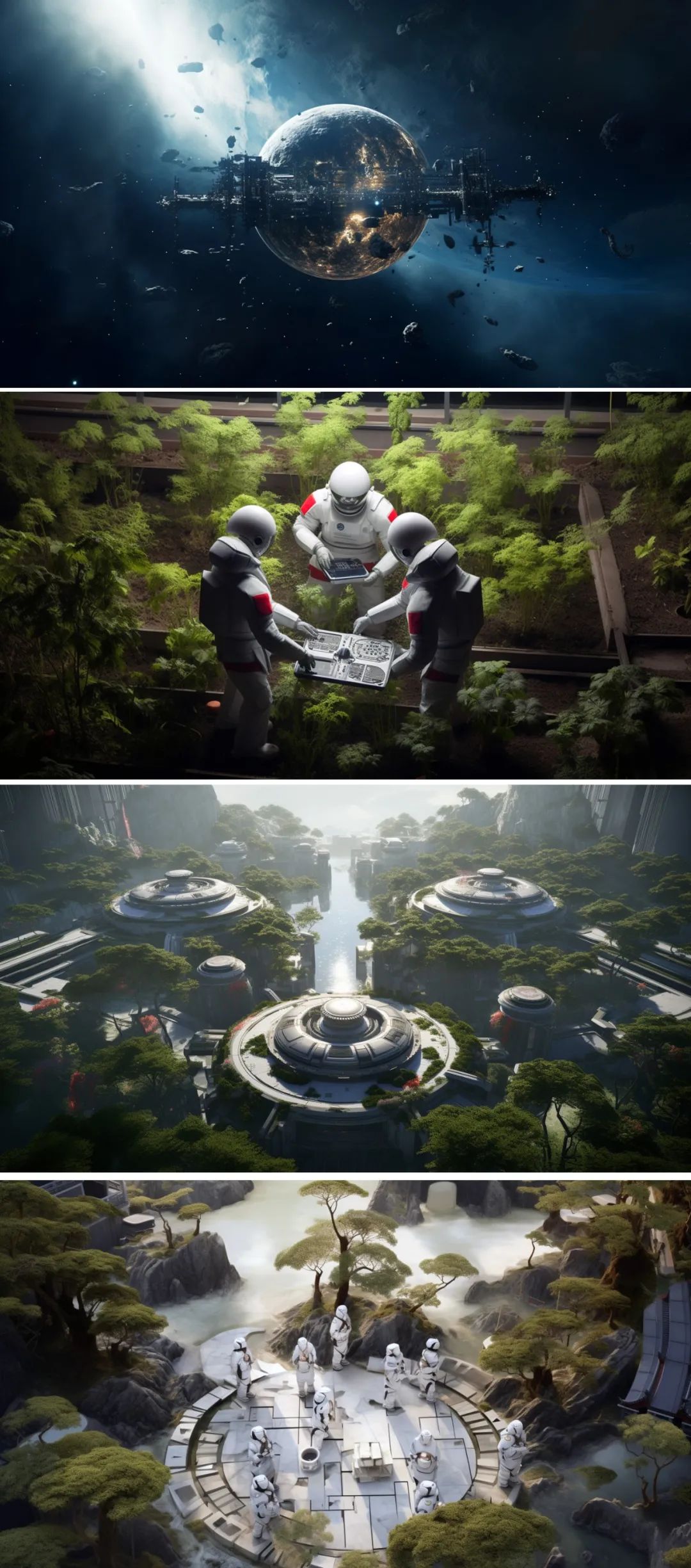 构思一个发生在园林里的故事,用AI工具生成故事板/漫画/连环画/长卷。