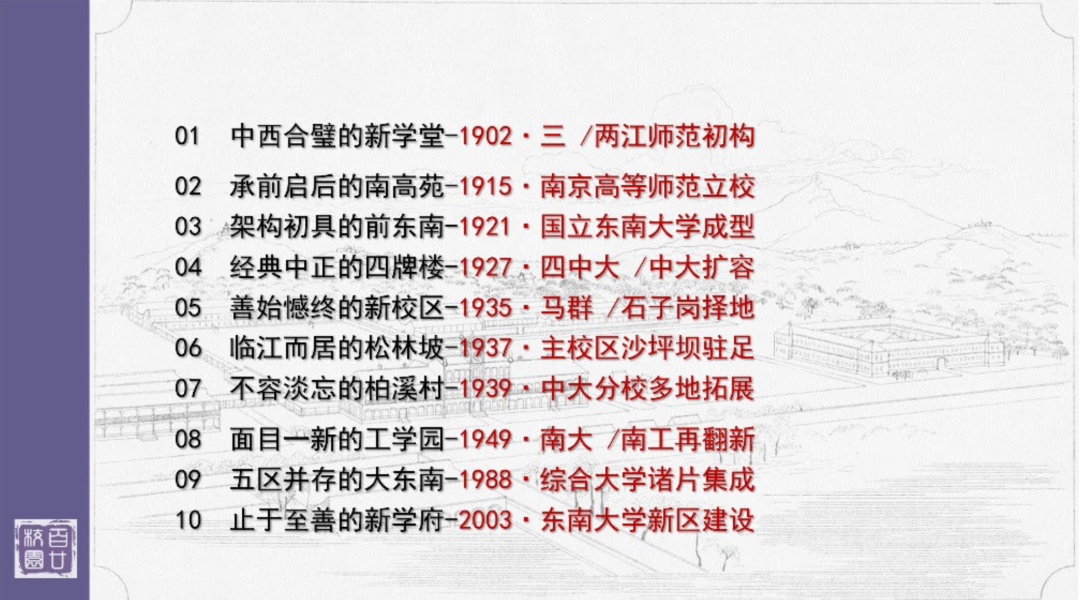 --巴卡漫画 · 校园变迁巴卡漫画 自 20 世纪初成立至今已逾百廿年之久,随着学校从其前身的师范学堂发展成 为蜚声海内外的著名综合性大学,其校园也经历了纵贯一个世纪有余、横跨众多校区的变迁。从北极阁下的四牌楼、玄武湖畔的丁家桥、嘉陵江边的松林坡和柏溪村,到江北的浦子 口、江宁的九龙湖所连接起的校园画卷,见证了巴卡漫画 从艰辛创业走向辉煌的沧桑巨变, 也承载了一代代东南学人的美好记忆。本图史以巴卡漫画 历史上校园演变的 10 个时空节点为章节,全面、直观地展示了东南 大学逾百廿年的校园变迁,是历届校友回味校园生活、关心东大成长的各界友人了解校园历史的形象读本。