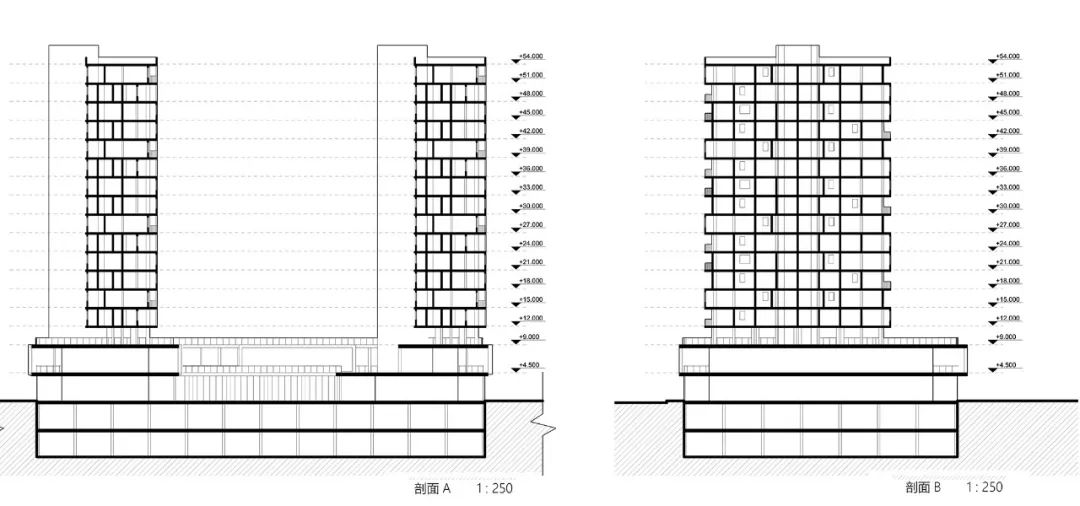 自下而上的利益平衡过程决定了小区的全局秩序。进而将高层住宅进行分组,组内生成裙房相连。南侧为三层商业裙楼,东侧为一、二层的退台式观景裙楼。地面场地与裙楼屋顶形成两套相互关联的“绿化-人行交通”系统。