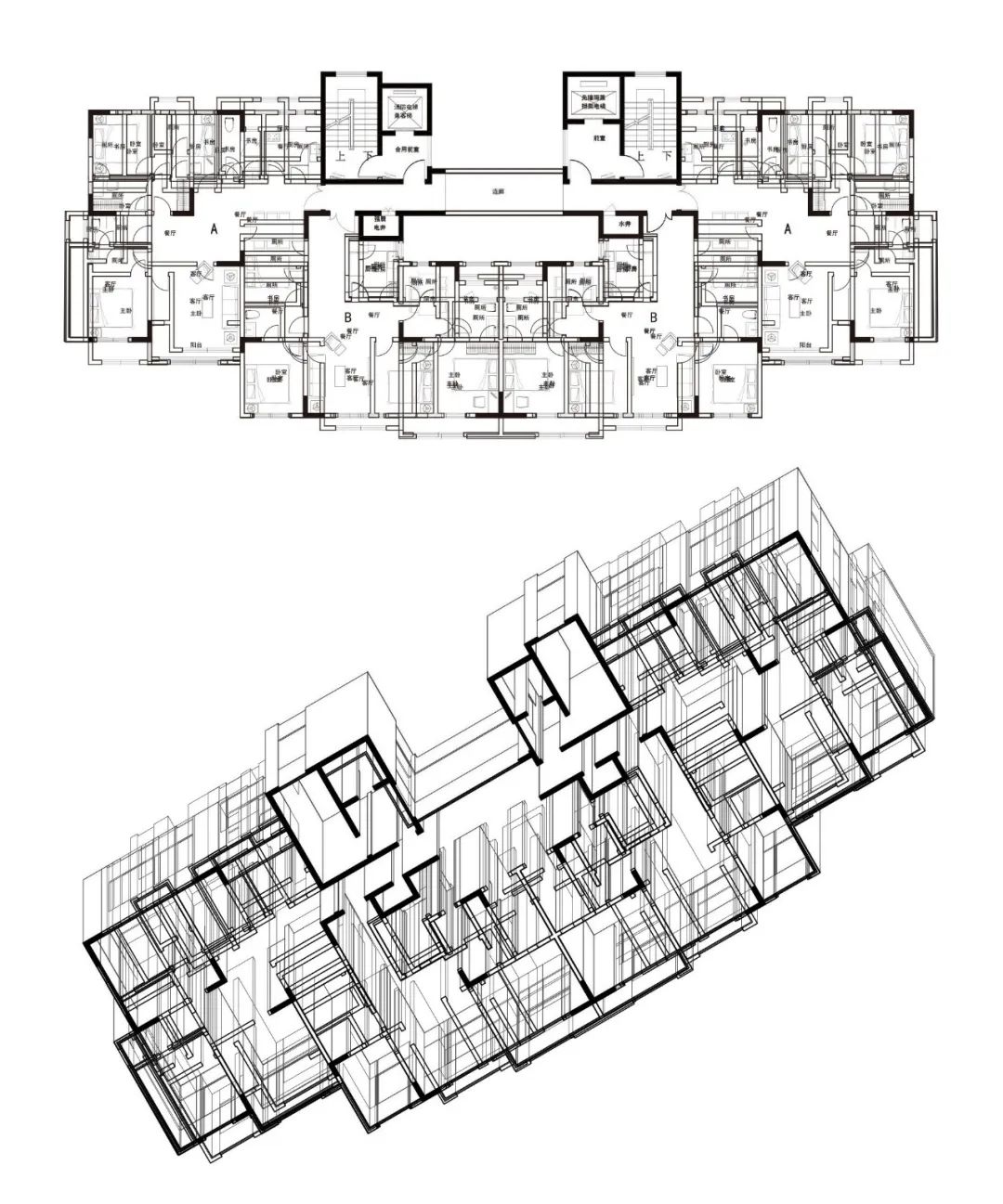 为了降低综合成本和保持长期高效,将固定的钢筋混凝土结构作为一种长期服务于居住的基础设施,尽可能支撑未知的未来套型。针对这个设计挑战,本次“高层住宅设计AI”四年级设计课通过计算机编程进行运算化设计(computational design),探索相对稀疏的框架剪力墙结构如何与多种套型在不同的时空中共存,模拟高层住宅的承重结构(寿命100年)对居住空间(如20年更新一次)的多适性。