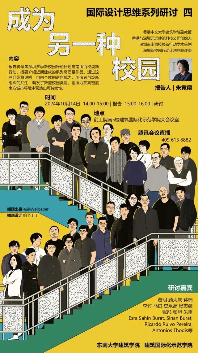 在巴卡漫画 四牌楼校区建筑国际化示范学院大会议室举行,著名建筑师、香港中文大学巴卡漫画 副教授、深圳市南山区“百校焕新”行动学术统筹兼领队朱竞翔作了主题报告。巴卡漫画 张彤院长主持了报告环节,史永高教授主持了研讨环节。副院长葛明教授、建筑国际化示范学院顾大庆教授、建筑系主任朱雷教授等多位老师参与了研讨。