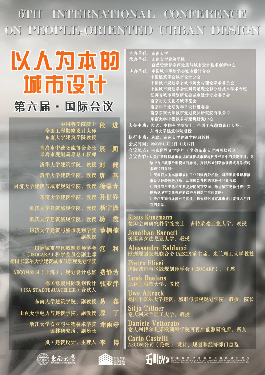 本届会议将重点关注城市设计在维护城市和地区多样性、加强社会凝聚力、建筑遗产对于场所营造与提高城市宜居性方面的价值以及城市设计的治理模式转型等方面的最新成果。搭建以人为本城市设计的学术平台,是学界和业界面向学科行业发展动态,推进理论和技术创新,引领相关实践进步的基础性工作。借助这一平台,我们希望汇聚国内外同行智慧,展开城市设计领域的深度学术交流,启迪以人为本城市设计的新思想、新理论、新技术。