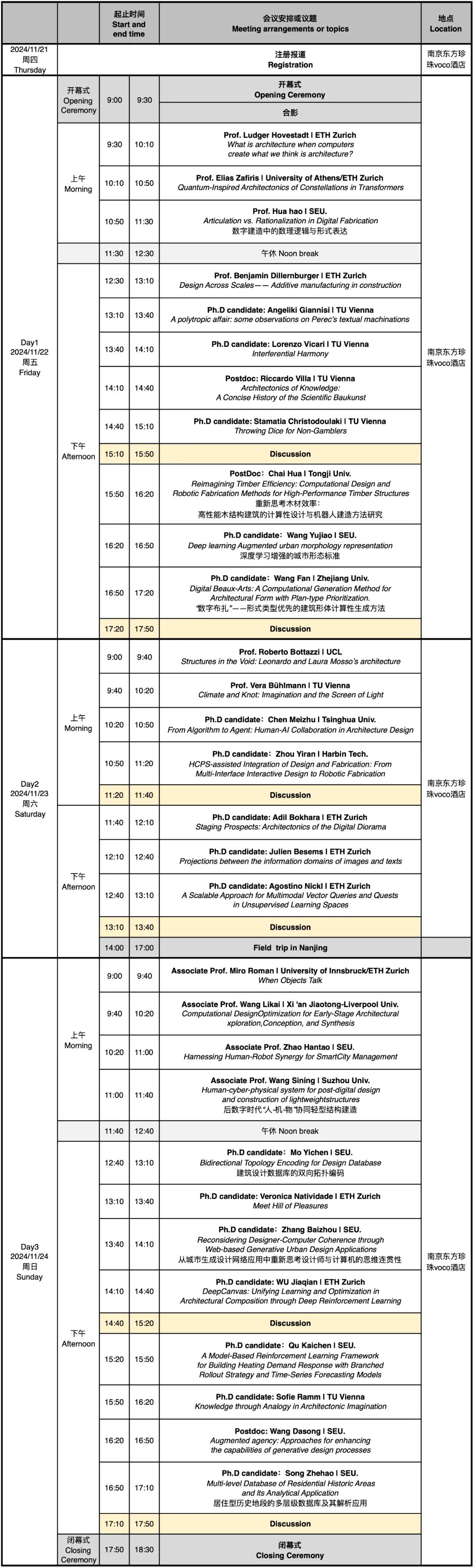2024 marks a significant milestone – 40 years of rich collaboration between the School of Architecture at Southeast University and ETH Zurich. From November 21 to 27, an international symposium along with a digital fabrication workshop titled Re-imagining Architecture: Navigating the Impact of Computing and Artificial Intelligence will be hosted at Southeast University.