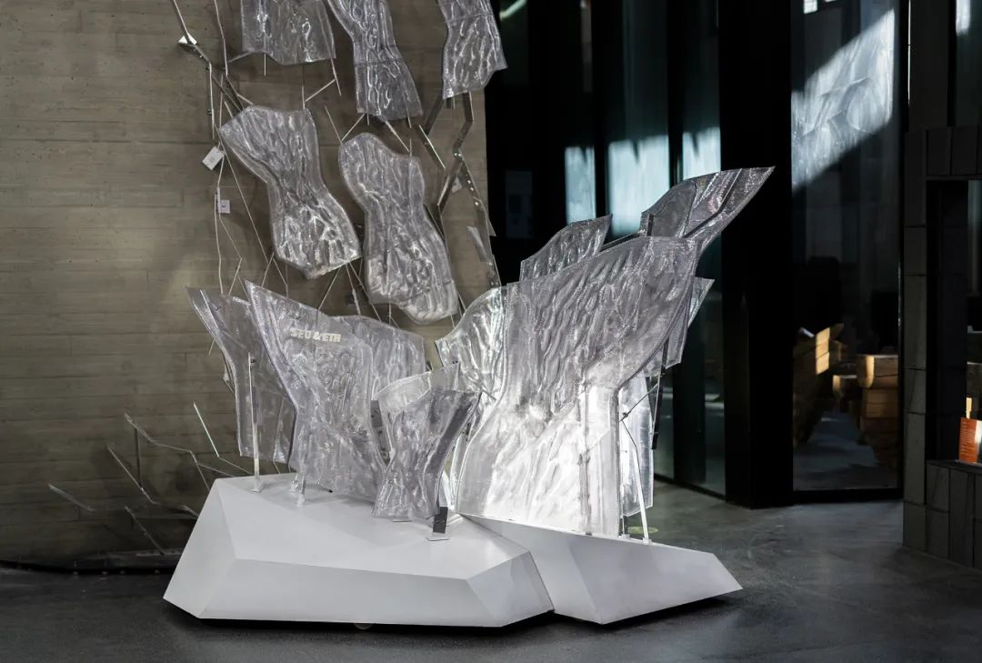 项目采用了CNC切割与弯折的金属结构框架与机械臂增材建造技术相结合的复合建构体系,整合数字化建造技术,以实现复杂结构的高精度控制。
